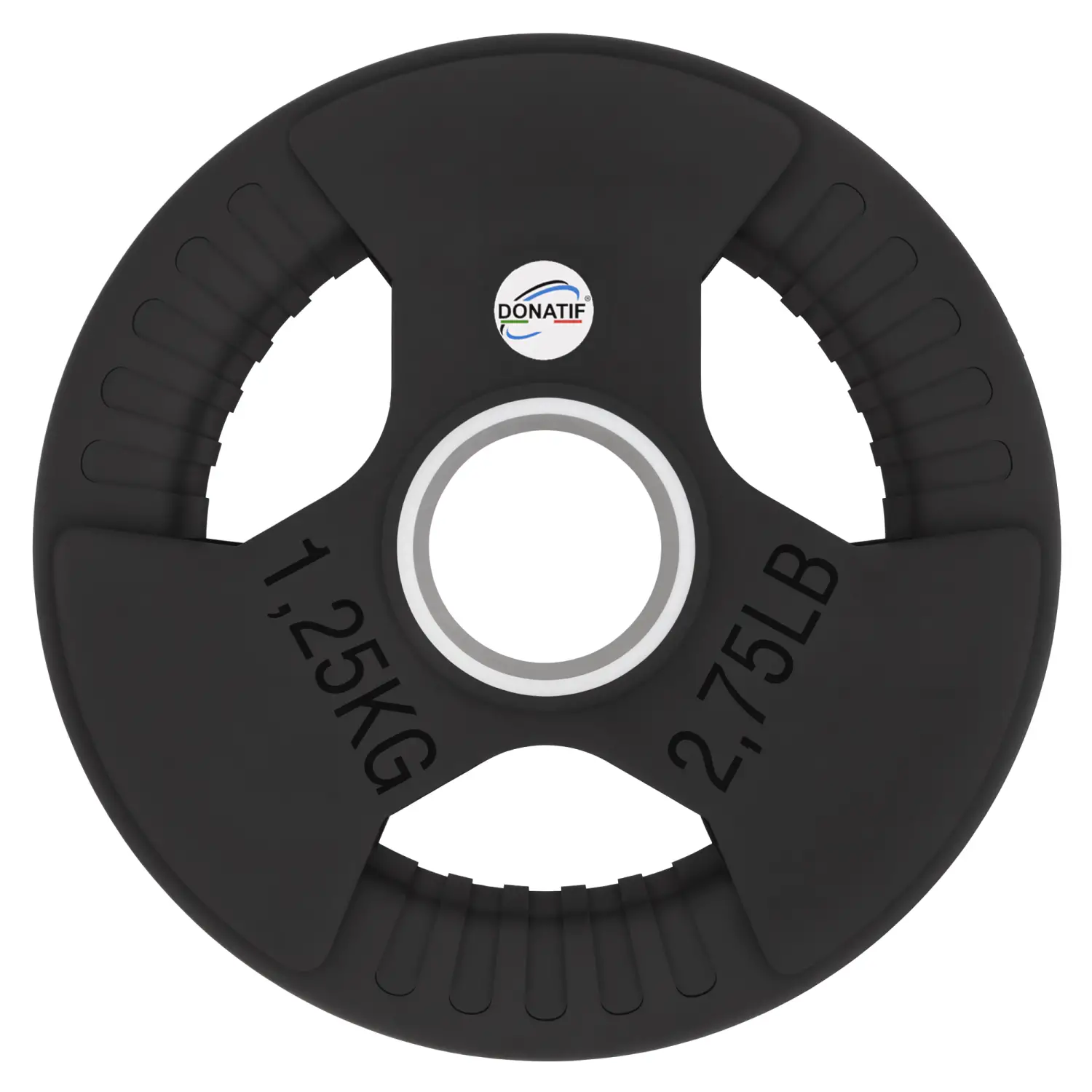 Die 1,25 kg schwere gummierte Hantelscheibe mit Griffen von Donatif ist ein hochwertiges Produkt, ideal für jedes Fitnessstudio oder Home Gym. Es besteht aus Gusseisen und ist mit hochdichtem Gummi beschichtet, um eine höhere Haltbarkeit und Festigkeit zu gewährleisten. Diese Beschichtung schützt die Scheibe nicht nur vor Rost, sondern sorgt auch für eine deutliche Geräuschreduzierung während des Gebrauchs und einen optimalen Schutz des Bodens.
