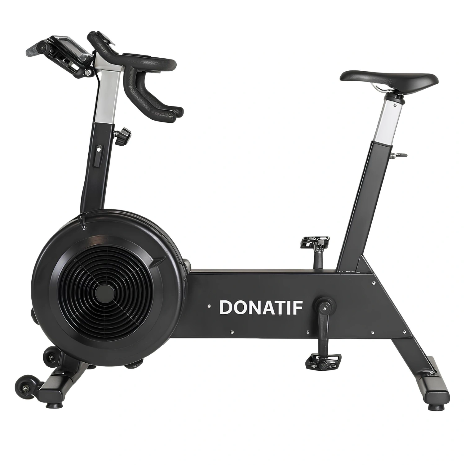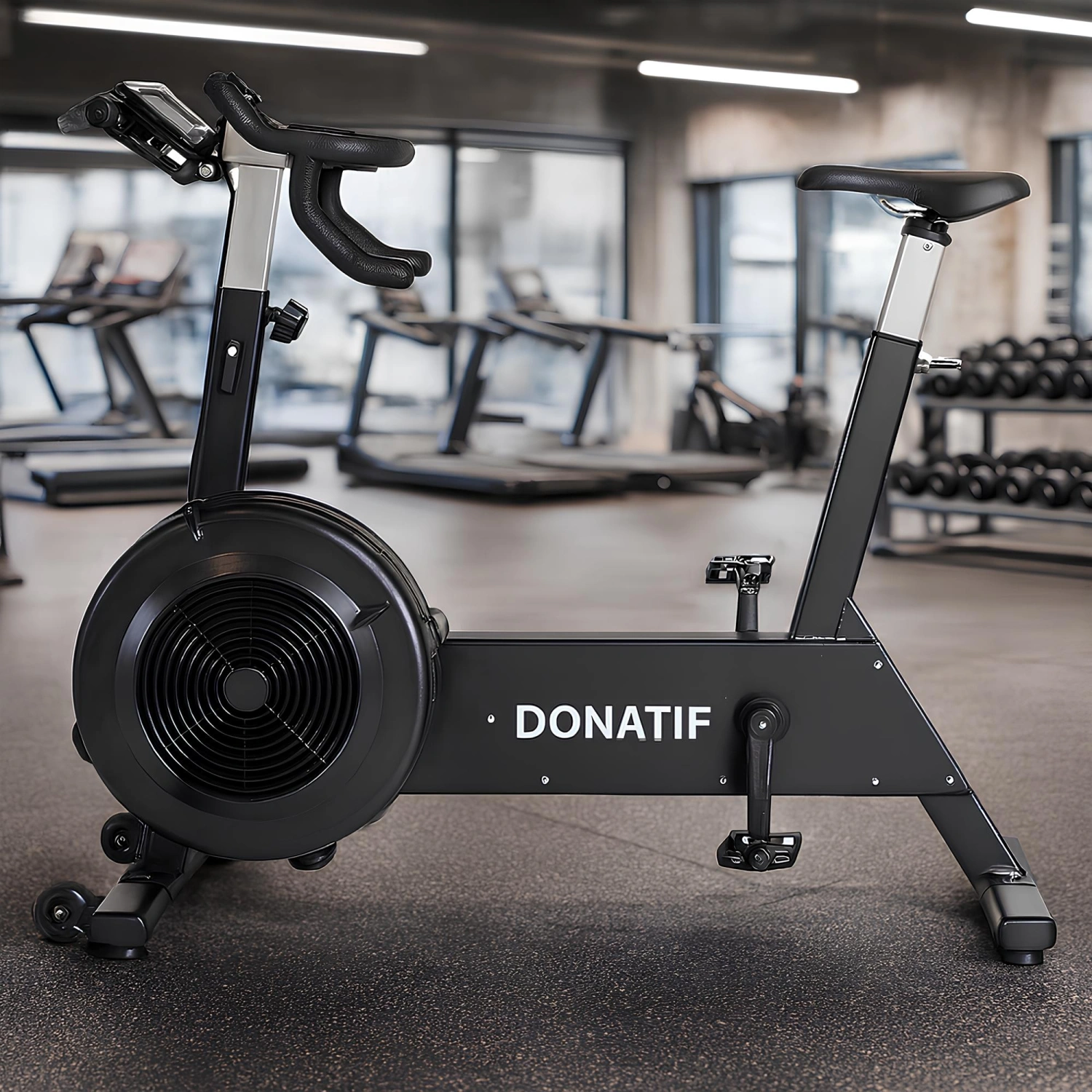 Unser ErgBike mit Luftwiderstand wurde entwickelt, um ein vollständiges und intensives Herz-Kreislauf-Training zu bieten. Hergestellt aus einer robusten Struktur aus Stahl und Aluminiumlegierung, garantiert es Haltbarkeit und Stabilität während des Gebrauchs. Seine Abmessungen von: Tiefe 122 cm, Breite 55 cm, Höhe 57 cm machen ihn kompakt und lassen sich leicht in jedem Raum platzieren. Das Gewicht der Maschine beträgt 53 kg und sie unterstützt ein maximales Benutzergewicht von bis zu 200 kg. Das multifunktionale Design umfasst Dual-Action-Übungsarme, mit denen Sie gleichzeitig Ihren Oberkörper trainieren und verschiedene Muskelgruppen beanspruchen können. Ein einzigartiges Widerstandssystem verwendet einen Lüfter anstelle des traditionellen gewichteten Schwungrads; Je höher die Tretgeschwindigkeit, desto mehr Widerstand wird erzeugt, was ein personalisiertes Training bietet, das sich an die gewünschte Intensität anpasst. Darüber hinaus erzeugt der Lüfter einen erfrischenden Luftstrom, der den Komfort und die Ausdauer während des Trainings erhöht. Ein High-Tech-LCD-Monitor fungiert als Kilometerzähler, der Zeit, Geschwindigkeit und zurückgelegte Strecke deutlich anzeigt und es Ihnen ermöglicht, Ihren Fortschritt in Echtzeit zu überwachen. Die verstellbaren Pedale sorgen für eine sichere und bequeme Position, während der verstellbare Sattel es Ihnen ermöglicht, das Fahrrad an die unterschiedlichen Bedürfnisse der Benutzer anzupassen.