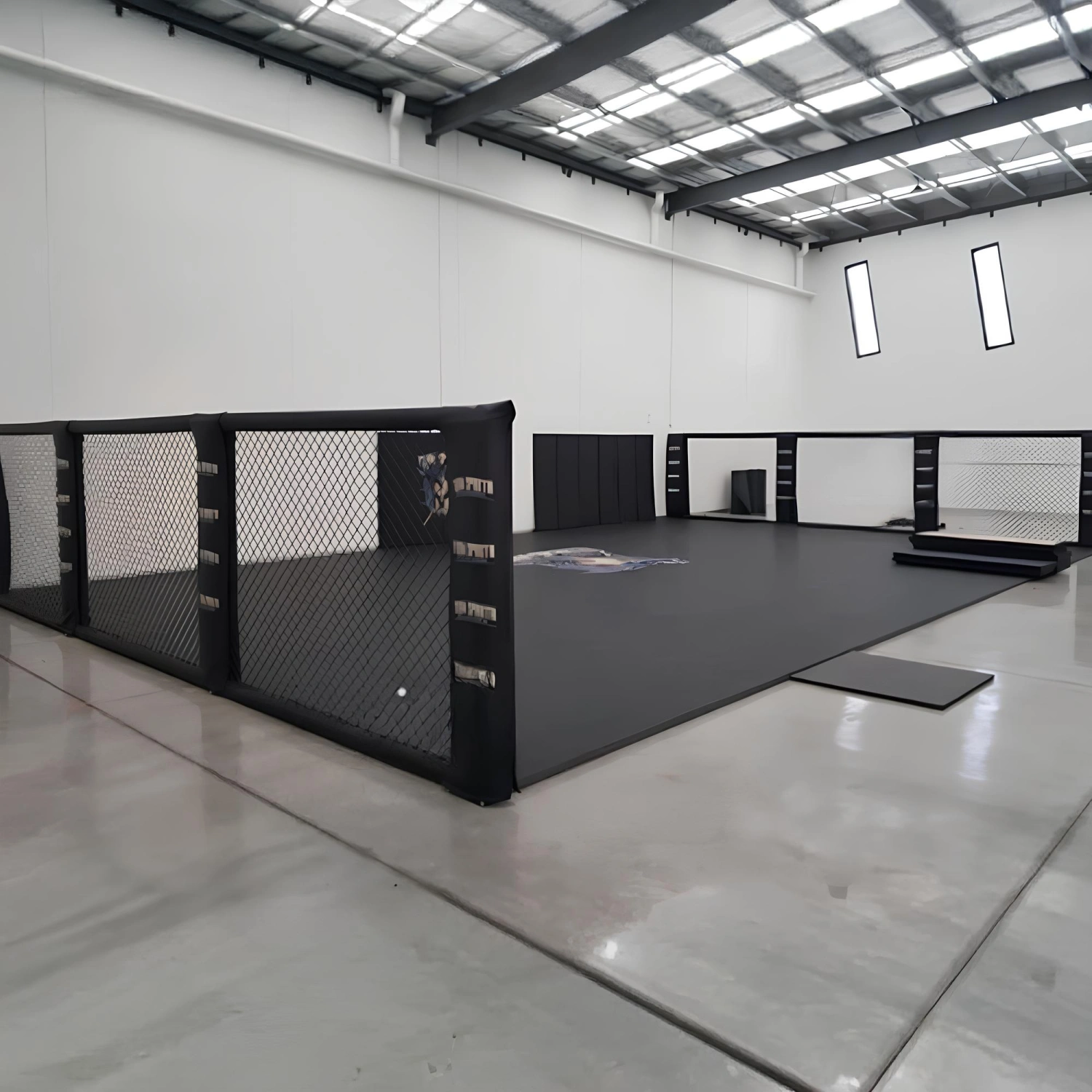 Dieses Modul ist ideal für den Bau eines kompletten MMA-Käfigs oder das Hinzufügen zusätzlicher Seiten zu einer bestehenden Struktur. Durch die Platzierung mehrerer Wände nebeneinander ist es möglich, eine geschlossene Struktur zu schaffen, die sich ideal für Training und Wettkämpfe eignet. Die Designflexibilität ermöglicht die Anpassung an verschiedene Räume: Fitnessstudios, Sportzentren, Veranstaltungen oder professionelle Umgebungen.