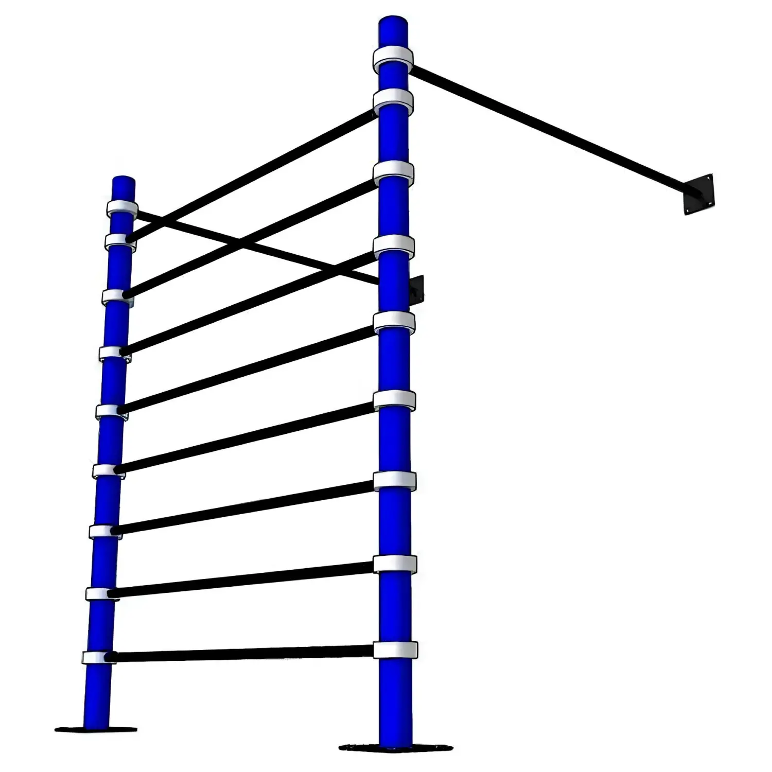 Jedes Detail der Wandstäbe wurde mit Präzision gepflegt, einschließlich einer doppelten Pulverbeschichtung für optimalen Grip und Haltbarkeit. Die Montagekragen bestehen aus 20 mm dickem Konstruktionsstahl, der hohen Belastungen standhalten kann, ohne die Sicherheit zu beeinträchtigen. Darüber hinaus kann die Struktur in Farbe und Länge der Balken individuell angepasst werden.