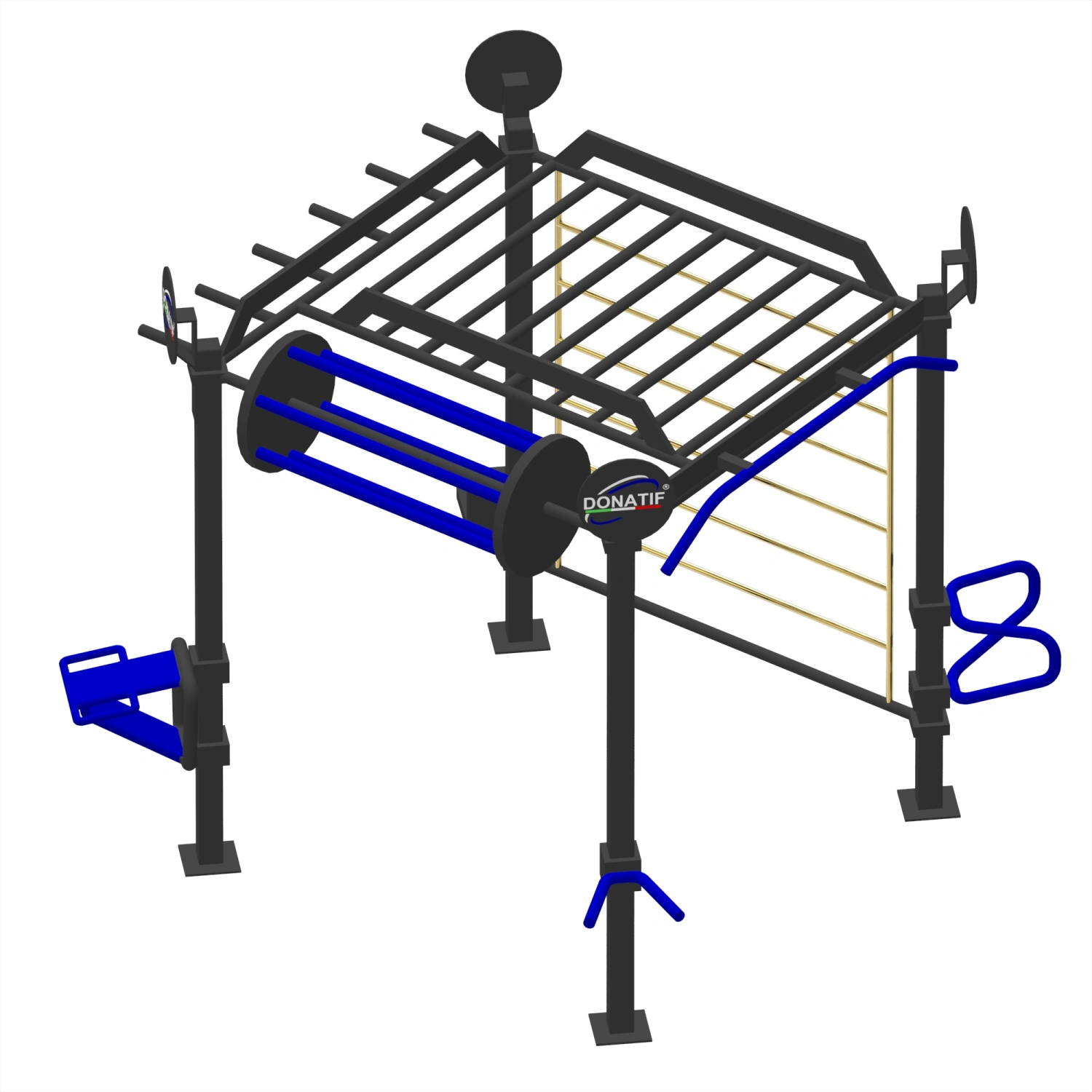 Wenn Sie sich für die Multi-User-Calisthenics-Struktur - CH58 entscheiden, investieren Sie in eine multifunktionale Struktur, die langlebig und mit einem modernen Design ausgestattet ist und in der Lage ist, unterschiedliche Bedürfnisse in einem einzigen Raum zu erfüllen. Dank der Möglichkeit, bis zu 8 Personen zusammen unterzubringen, ist es die ideale Option für Gemeinden, öffentliche und private Einrichtungen, die Outdoor-Fitness als soziale und integrative Aktivität fördern möchten. Mit dieser Station bringt Donatif Qualität, Zuverlässigkeit und italienisches Design in die Natur und bietet ein vollständiges und motivierendes Trainingserlebnis.