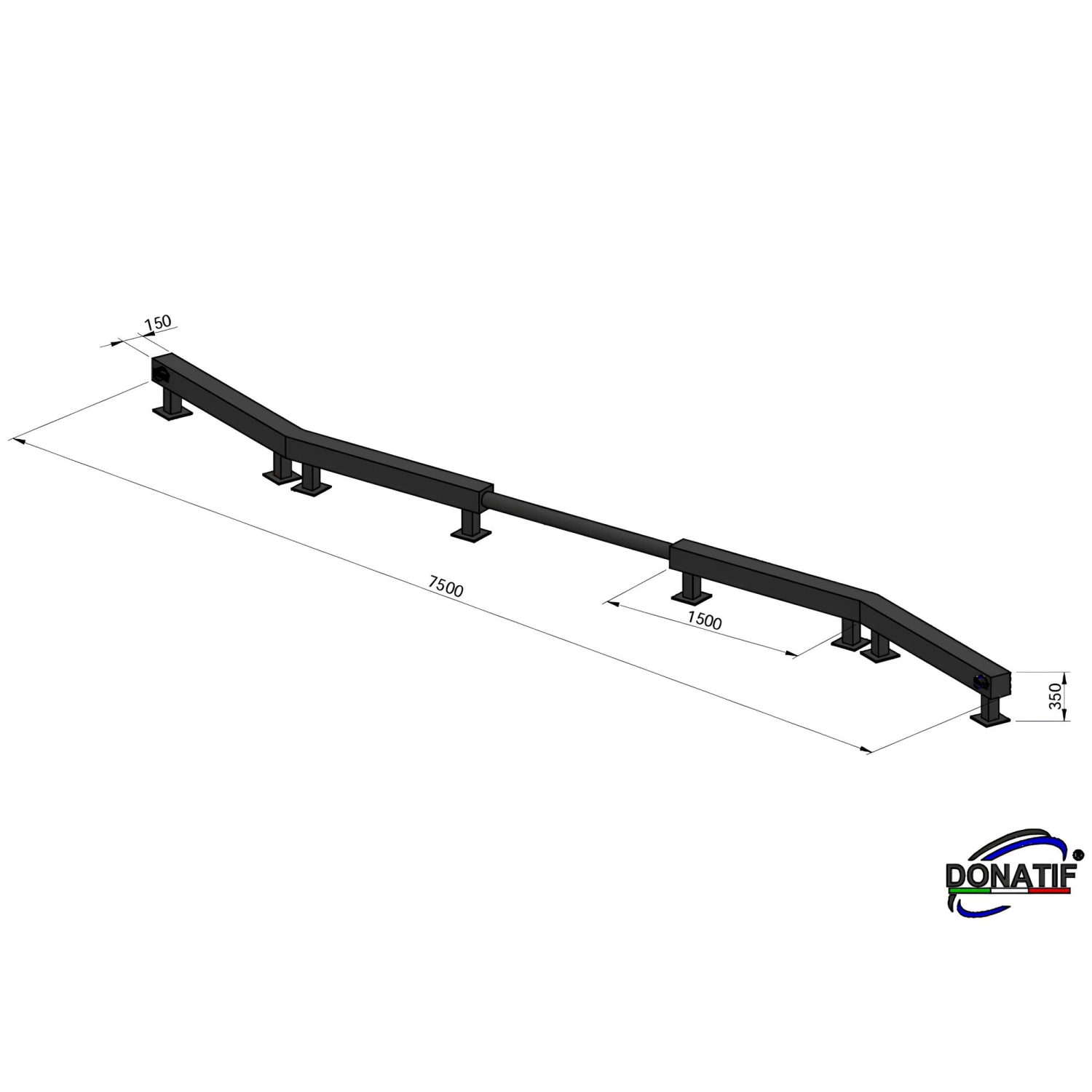 Geben Sie die gewünschten Anpassungen an und klicken Sie auf "Anpassung speichern".Der Wavy Balance Beam - CH85 DONATIF ist eine Struktur, die entwickelt wurde, um Gleichgewicht, Kontrolle und Koordination zu stimulieren. Er besteht aus hochfestem Stahl mit einem Vierkantrohr von 150x150x3 mm und hat eine wellenförmige Form, die zwischen flachen und geneigten Abschnitten wechselt und einen Weg schafft, der Stabilität und Konzentration auf die Probe stellt. Die Oberflächenveredelung umfasst eine Feuerverzinkungs- und Pulverbeschichtungsbehandlung, die das Metall vor Rost, Stößen und Witterungseinflüssen schützt und es für den intensiven Gebrauch sowohl im Innen- als auch im Außenbereich geeignet macht. Mit ihren Abmessungen – 750 cm tief, 15 cm breit, 35 cm hoch – und einem Gewicht von 50 kg garantiert die Struktur Solidität und Sicherheit während des Gebrauchs bei gleichzeitiger Beibehaltung eines kompakten und eleganten Designs.