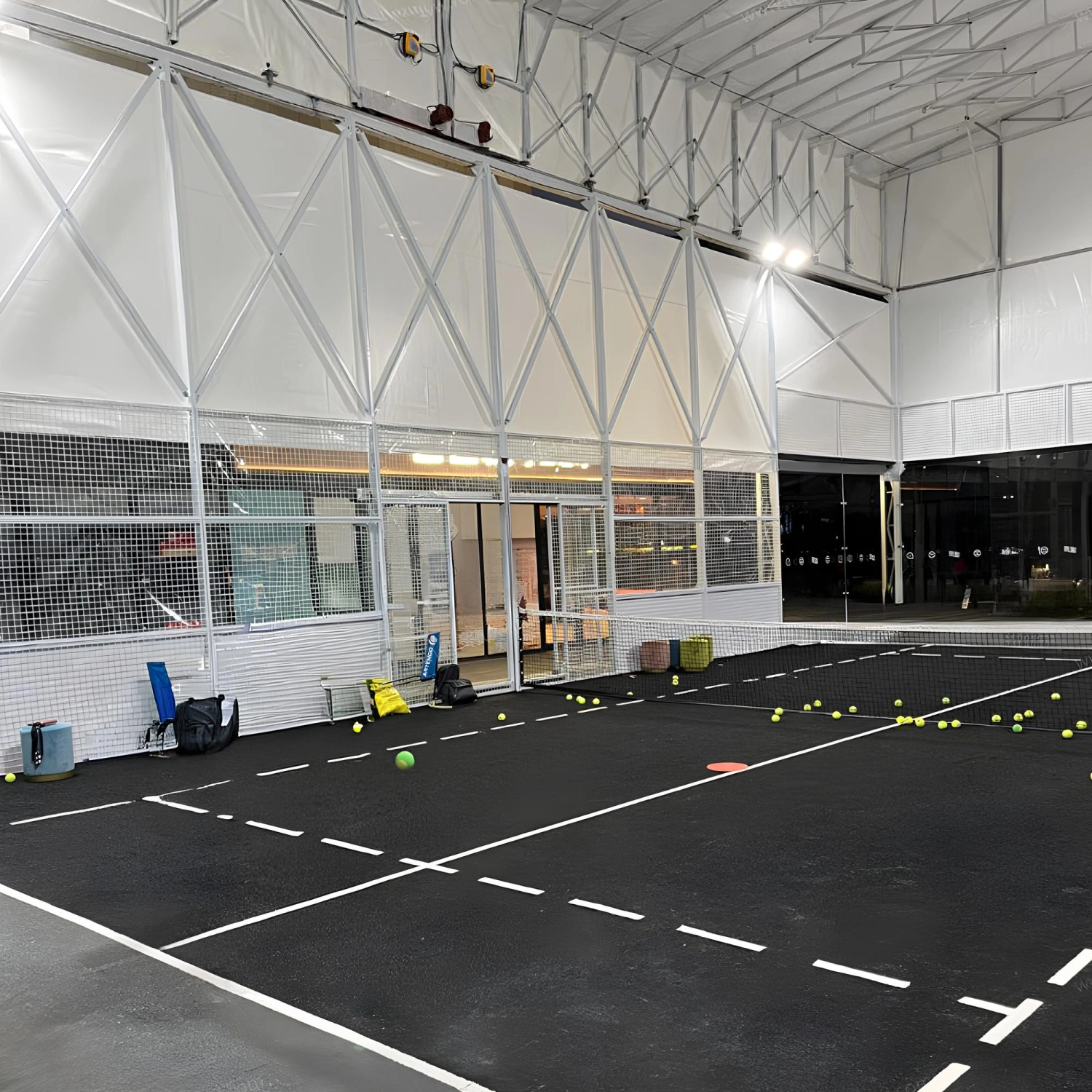Die Möglichkeit, das Dach elektrisch zu öffnen, spart Energie und verbessert die natürliche Belüftung, was sowohl den Sportlern als auch der Öffentlichkeit Komfort bietet. Jede Komponente wird so ausgewählt, dass sie lange hält: von Edelstahl 304 bis zu verstärkten Gittern, von gehärtetem Glas bis hin zu professionellem Kunstrasen.