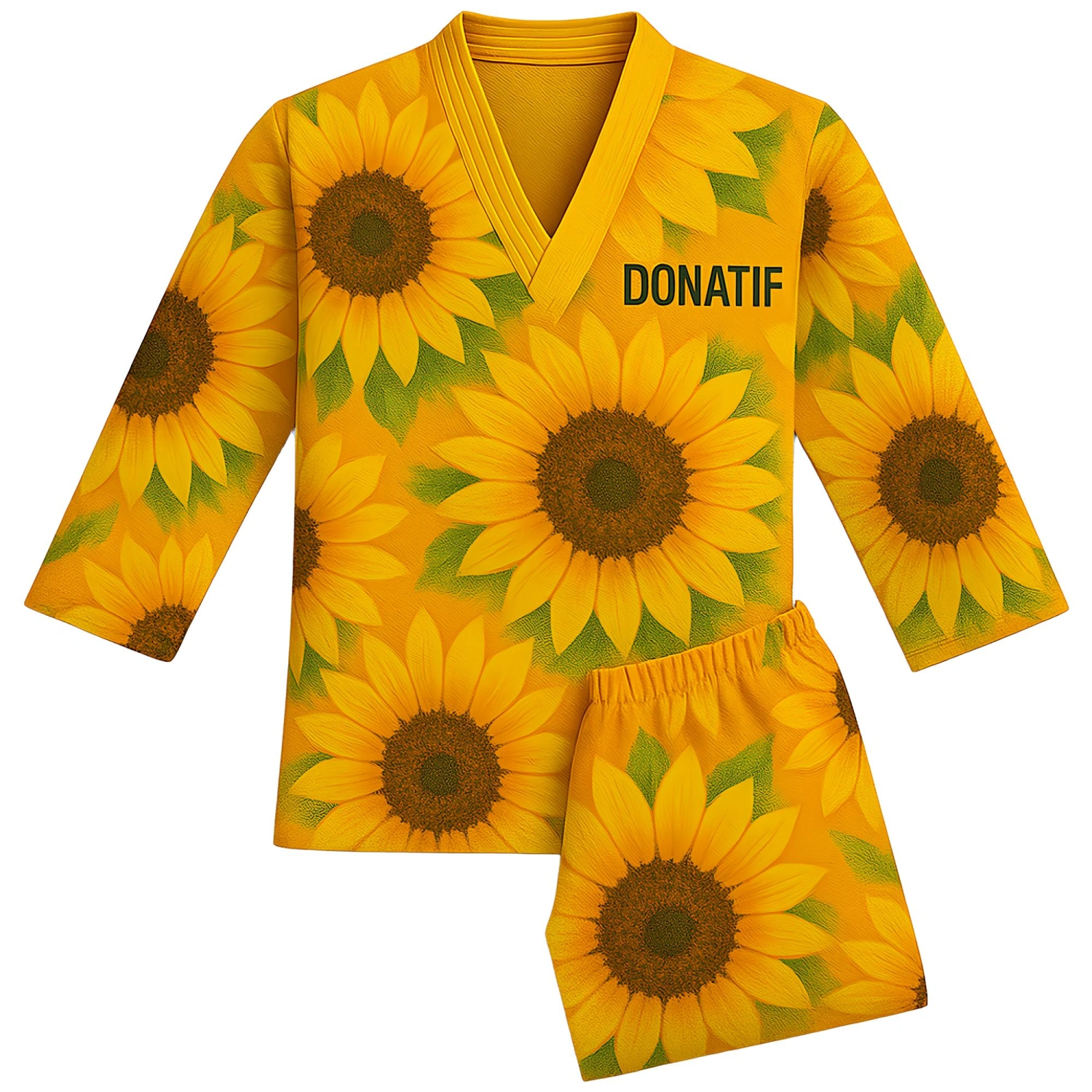 Geben Sie die gewünschten Anpassungen an und klicken Sie auf "Anpassung speichern".Dobok Taekwondo mit Sonnenblumendruck - TA7 wurde entwickelt, um maximale Leistung zu bieten, ohne auf Stil und Respekt vor der Kampftradition zu verzichten. Jedes Detail dieser professionellen Uniform ist darauf ausgelegt, Sportler und Praktizierende auf ihrem technischen Weg zu begleiten und Funktionalität, Komfort und eine starke ästhetische Identität zu bieten. Die Konstruktion aus hochwertigem Poly-Baumwollgewebe sorgt für eine ideale Kombination aus Leichtigkeit, Atmungsaktivität und Widerstandsfähigkeit, wodurch es selbst für die intensivsten Workouts geeignet ist.
