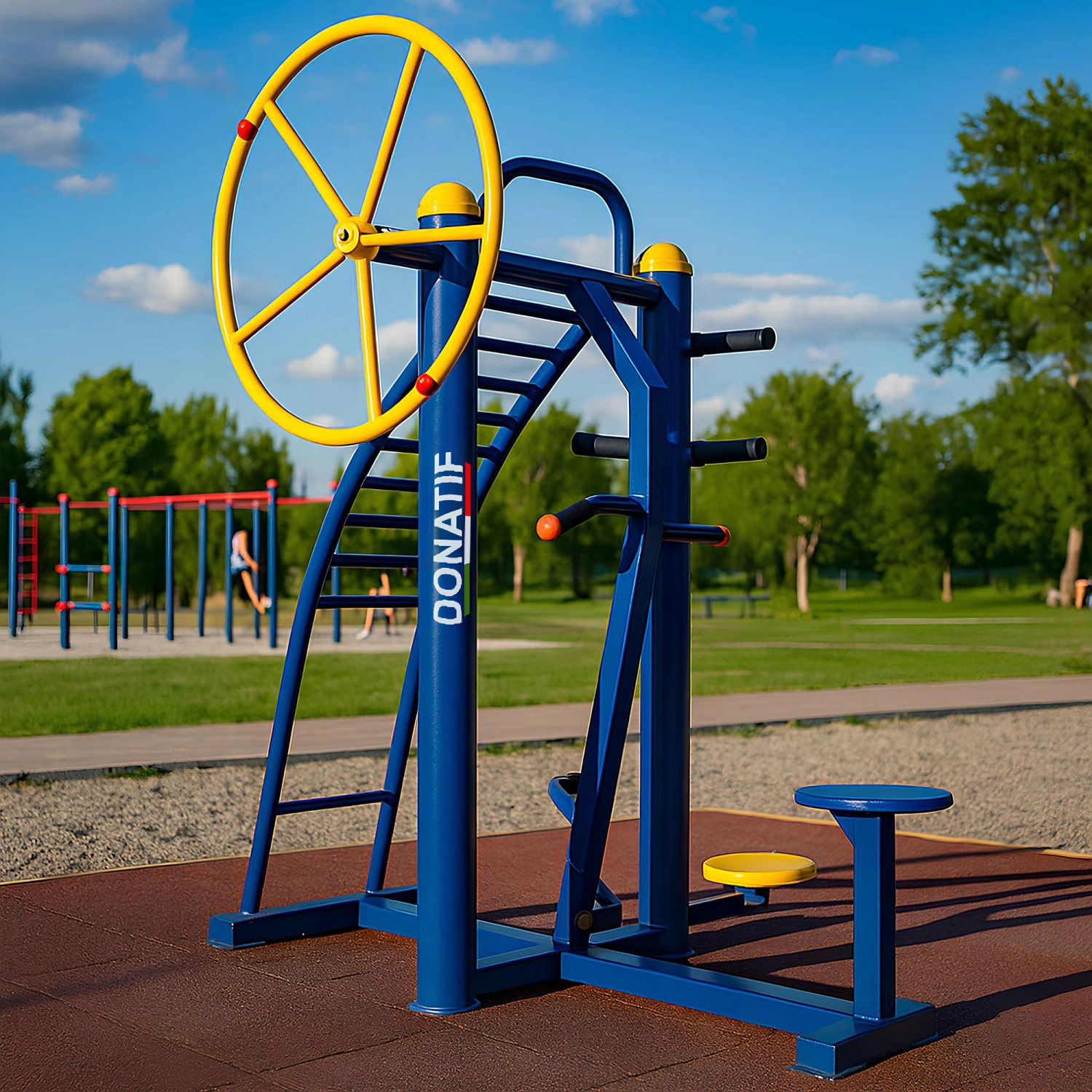Die Double Station Arm Rotation von Donatif ist ein multifunktionales Outdoor-Gerät, das für sanftes Training, motorische Rehabilitation und die Vorbeugung von Gelenksteifigkeit konzipiert wurde.