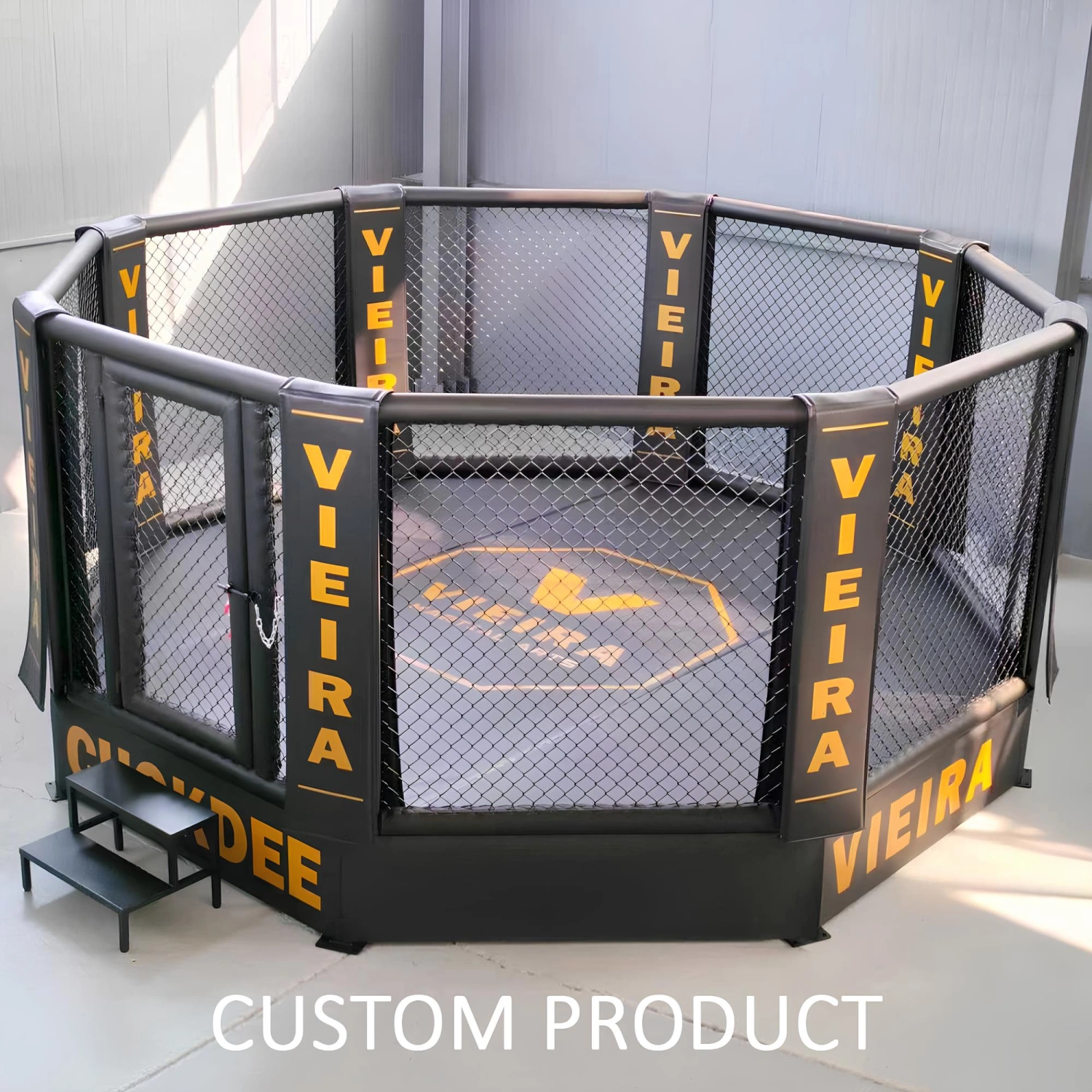 Hinweise: Im Lieferumfang sind zwei Leitern enthalten, die für den Zugang der Sportler zum Käfig vorgesehen sind. Eine dritte Setlist, die dem Schiedsrichter gewidmet ist, ist auf Anfrage erhältlich.