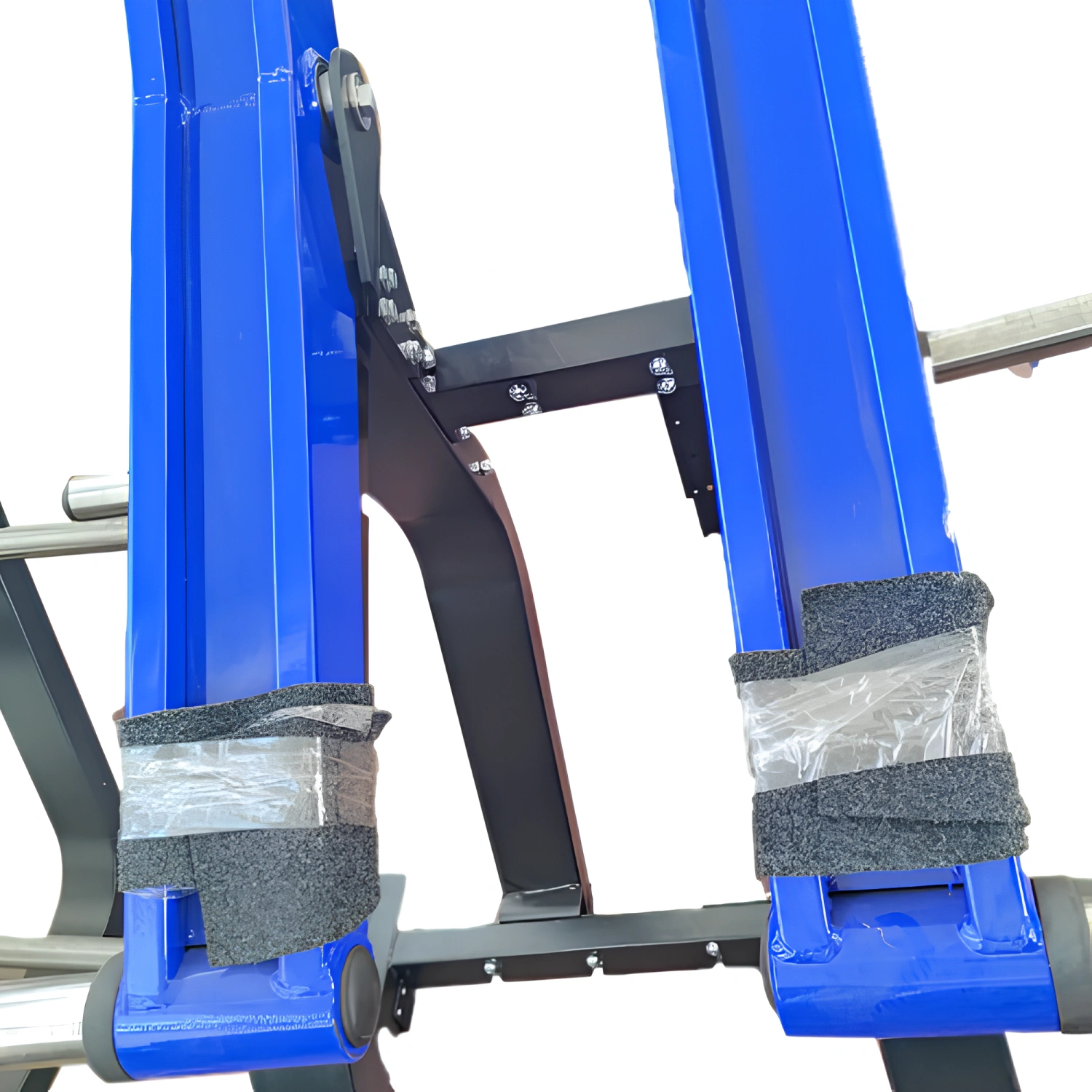 Die Free Load Lat Machine - X6 wurde entwickelt, um ein professionelles Trainingserlebnis zu bieten, ideal für Fitnessstudios und Fitnesscenter. Hergestellt aus robustem Stahl und mit Epoxidpulverfarbe beschichtet, garantiert es Verschleißfestigkeit und lange Lebensdauer. Seine kompakten Abmessungen (Tiefe 112 cm, Breite 174 cm und Höhe 199 cm) und das Gewicht von 155 kg machen ihn auch bei hochintensiven Sessions stabil und sicher. Das Freiladesystem ermöglicht die Verwendung von kundenspezifischen Hantelscheiben und bietet Flexibilität und Einsparungen, ohne dass spezielle Gewichtsstapel erforderlich sind. Die Lat Machine ist außerdem mit einem gepolsterten und verstellbaren Sitz und einer Rückenlehne ausgestattet, die maximalen Komfort und eine optimierte Ergonomie ermöglichen. Mit einer maximalen Belastung von 880 kg erfüllt dieses Gerät die anspruchsvollsten Anforderungen, ideal für intensives Training und für erfahrene Sportler.
