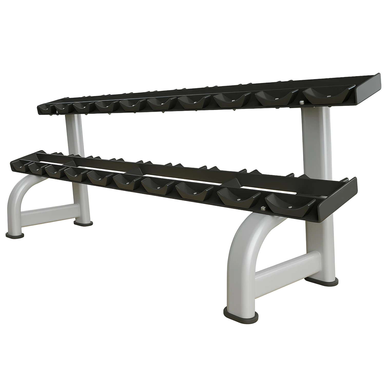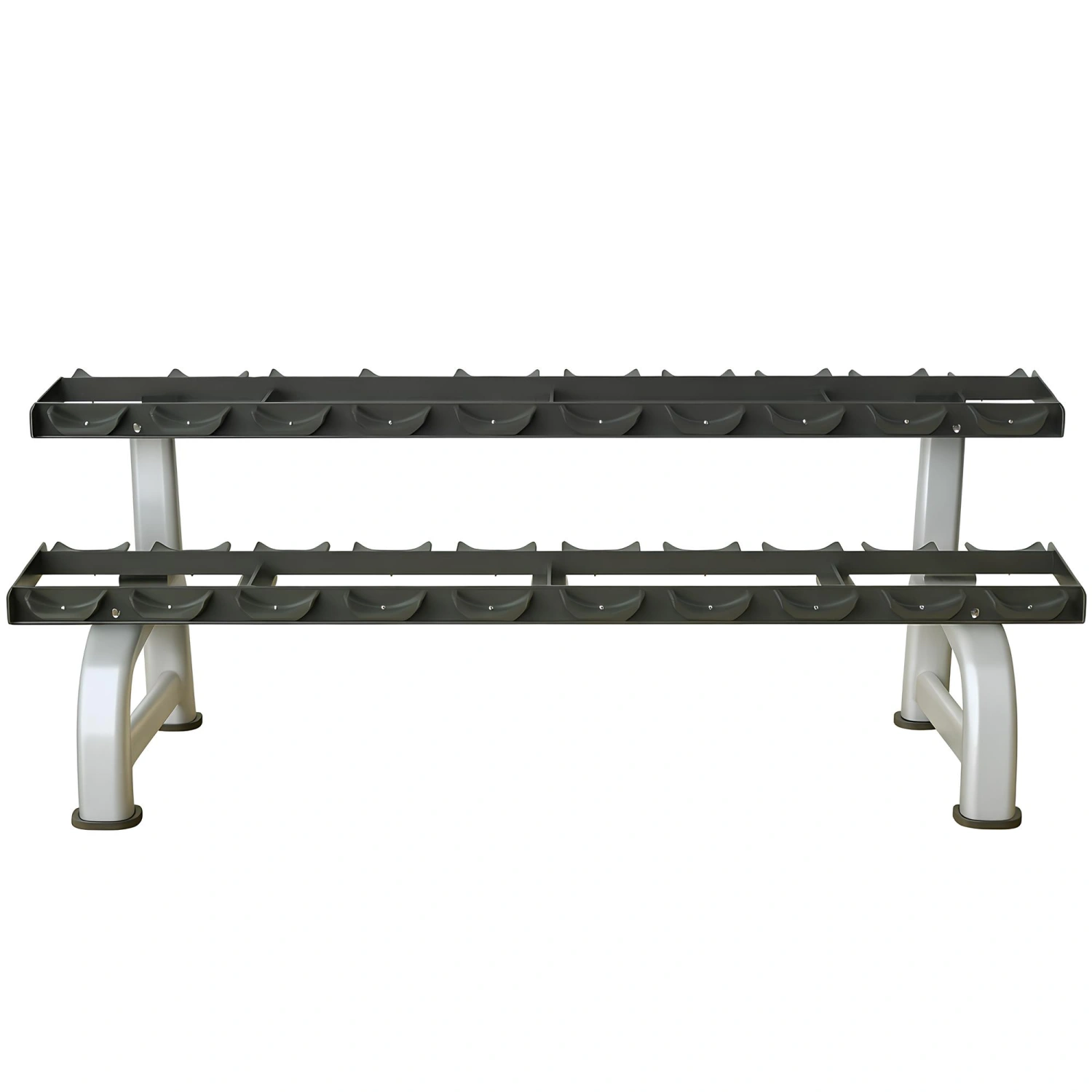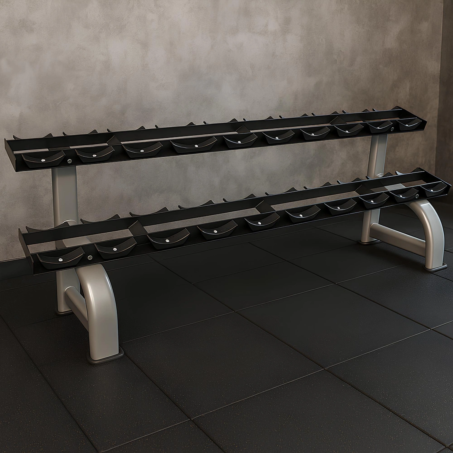 Das Hantelregal 2 Regale ist für den Einsatz in professionellen Umgebungen konzipiert. Perfekt für die Organisation von Hanteln in einem Fitnessstudio, hilft es, den Trainingsbereich aufgeräumt und sicher zu halten, Unordnung zu vermeiden und das Unfallrisiko zu verringern. Dank seiner kompakten Bauweise kann dieses Rack in jeder Ecke des Raumes aufgestellt werden, um den verfügbaren Platz optimal zu nutzen. Es ist ideal sowohl für kleine Wohnräume als auch für größere Fitnessstudios, die eine optimale Organisation benötigen. Die Anordnung der Regale ermöglicht es Ihnen, die Hanteln funktional anzuordnen und so immer maximale Praktikabilität bei den Übungen zu gewährleisten.