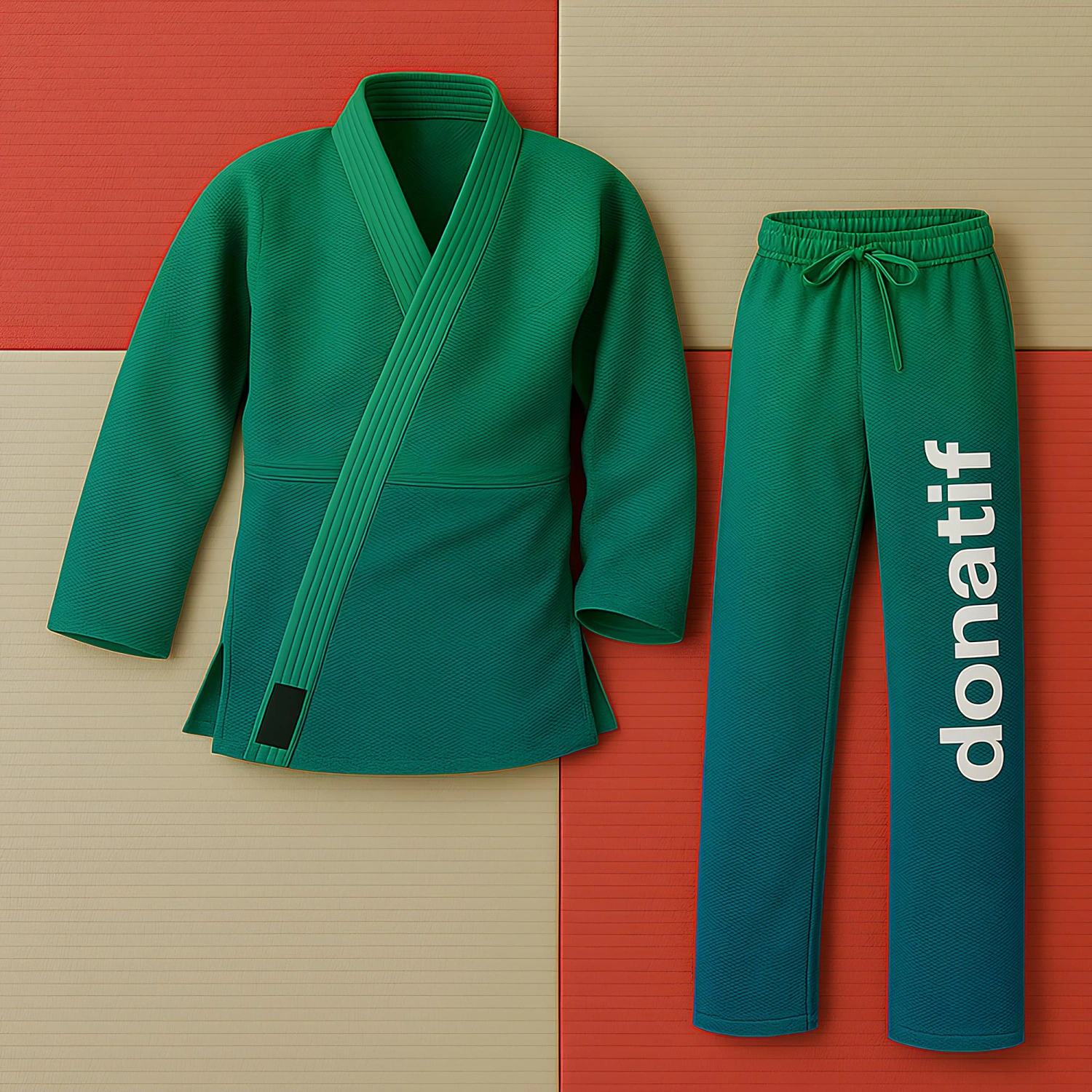 Die Wahl eines grünen und blauen Judogi für Training und Wettkampf JU2 Donatif bedeutet, sich auf ein sorgfältig gefertigtes Kleidungsstück zu verlassen, das von der Tradition inspiriert ist, aber für moderne Bedürfnisse konzipiert ist. Jedes Detail – von der Wahl des Gewebes aus 100 % Baumwolle bis hin zu den verstärkten Nähten – ist darauf ausgelegt, den Athleten ein authentisches, sicheres und langlebiges Erlebnis zu bieten. Die Aufmerksamkeit für das Design und die Qualität der Materialien macht unsere Judogi nicht nur leistungsstark, sondern auch repräsentativ für einen unverwechselbaren Stil, in dem sich Technik und Leidenschaft treffen. Mit Donatif wird Judogi zu einem integralen Bestandteil des sportlichen Weges und begleitet jeden Judoka dabei, zu wachsen und seine Grenzen zu überwinden.