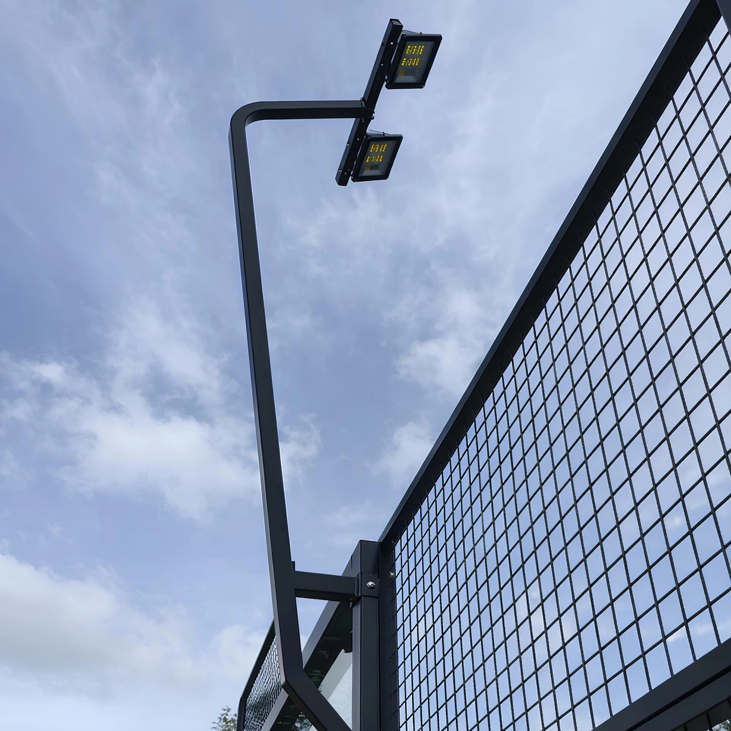 Die LED-Beleuchtung erfolgt über 4 Masten mit 8 200W-Strahlern, die eine Helligkeit von 300 Lux und Schutzart IP65 garantieren. Die Standard-Lichtmasten erreichen eine Höhe von 3 Metern, es sind aber auch Versionen bis zu 6 Metern mit optionaler C-Form erhältlich. Die Installation wird durch einen monofilen Kunstrasen von KDK vervollständigt: 12 mm hoch, Dichte 52.500 Punkte/m², PP-Träger + Netz und Latexbeschichtung. Der Ø1,6mm-1,25mm Quarzsand garantiert eine gleichmäßige und optimale Füllung für die Bespielbarkeit. Alle Komponenten, von den Schrauben aus rostfreiem Stahl 304 bis hin zu den Glas- und Gummibeschlägen, wurden so ausgewählt, dass sie langfristig Haltbarkeit, Zuverlässigkeit und Sicherheit bieten.