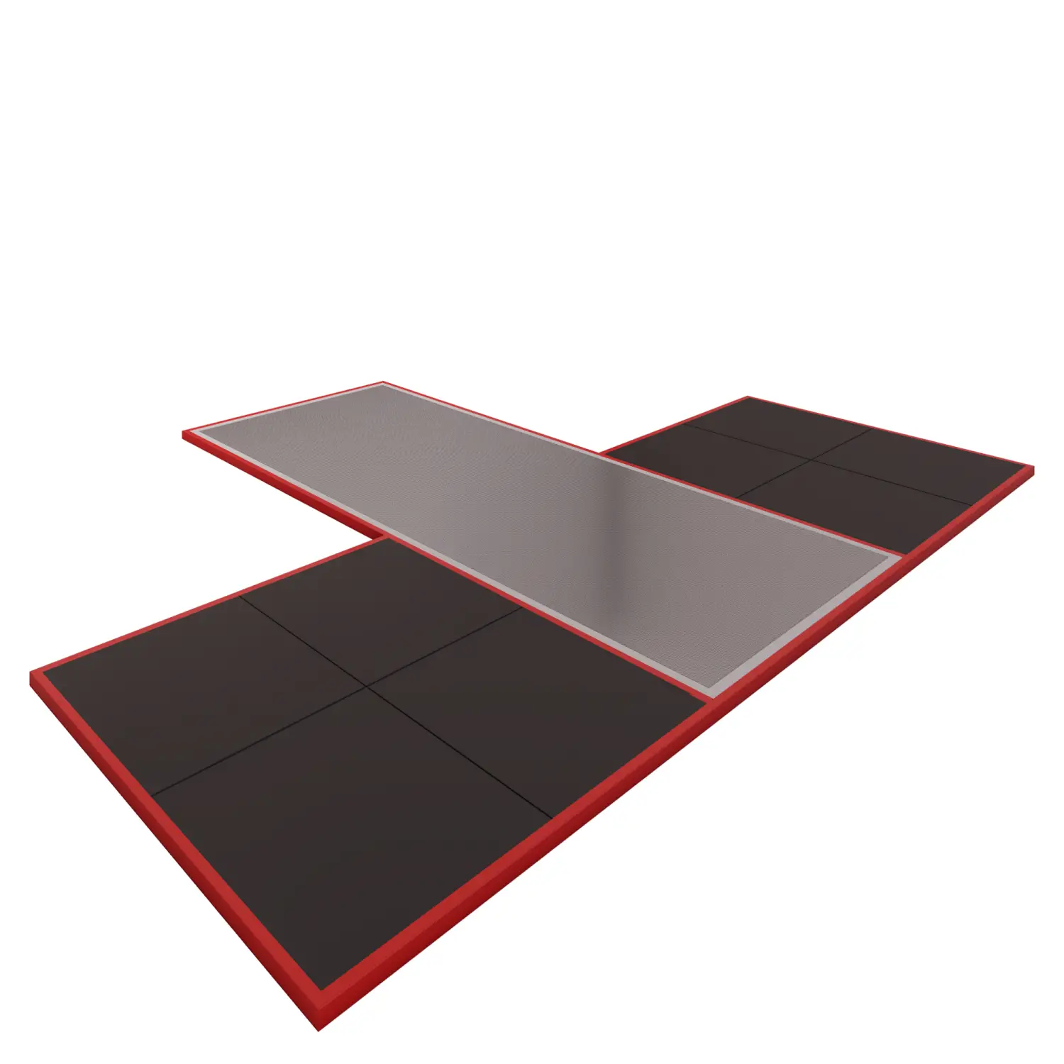Zu den Hauptmerkmalen der Plattform gehört die Fähigkeit, Geräusche zu reduzieren und Stöße zu absorbieren, dank der Verwendung hochwertiger stoßdämpfender Materialien. Damit eignet es sich nicht nur für Fitnessstudios, sondern auch für häusliche Umgebungen oder Fitnesscenter, die sich in lärmempfindlichen Umgebungen befinden. Die Hebefläche ist rutschfest, so dass sie maximalen Halt und Sicherheit bei der Ausführung der Übungen bietet. Dank der Dicke von 4 cm und des Gesamtgewichts von 150 kg für die Standardplattform 300x220 cm garantiert es Stabilität auch bei schweren Lasten und bietet eine sichere und zuverlässige Unterstützung für die intensivsten Workouts.