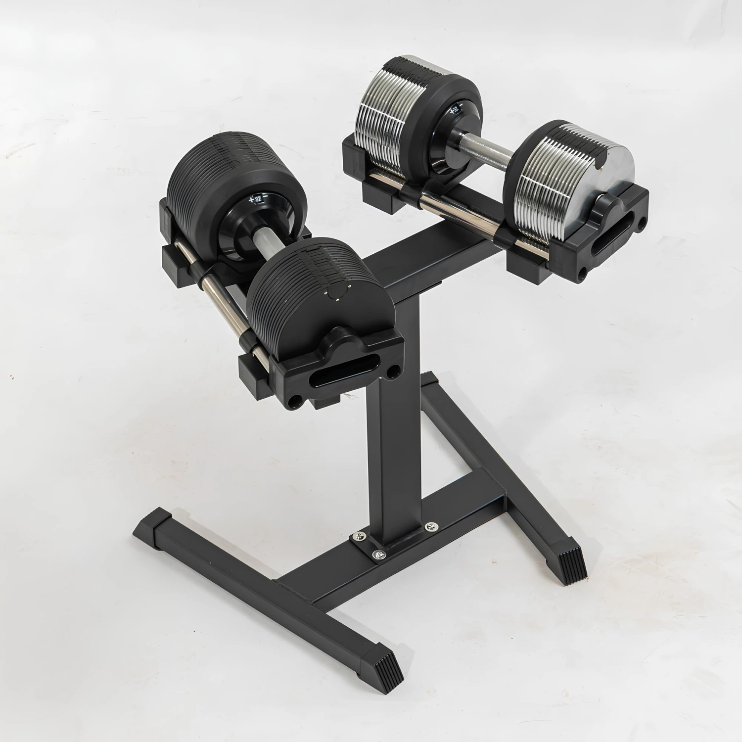 Die Basis des Ständers ist mit rutschfesten Gummifüßen ausgestattet, die für maximale Stabilität während des Gebrauchs sorgen. Diese Funktion sorgt für eine sichere Platzierung der Hanteln und schützt die Böden in Ihrem Zuhause vor Kratzern oder Beschädigungen. Es ist ideal für diejenigen, die ein sicheres und wirksames Produkt suchen, ohne auf die Pflege von Wohnräumen verzichten zu müssen.