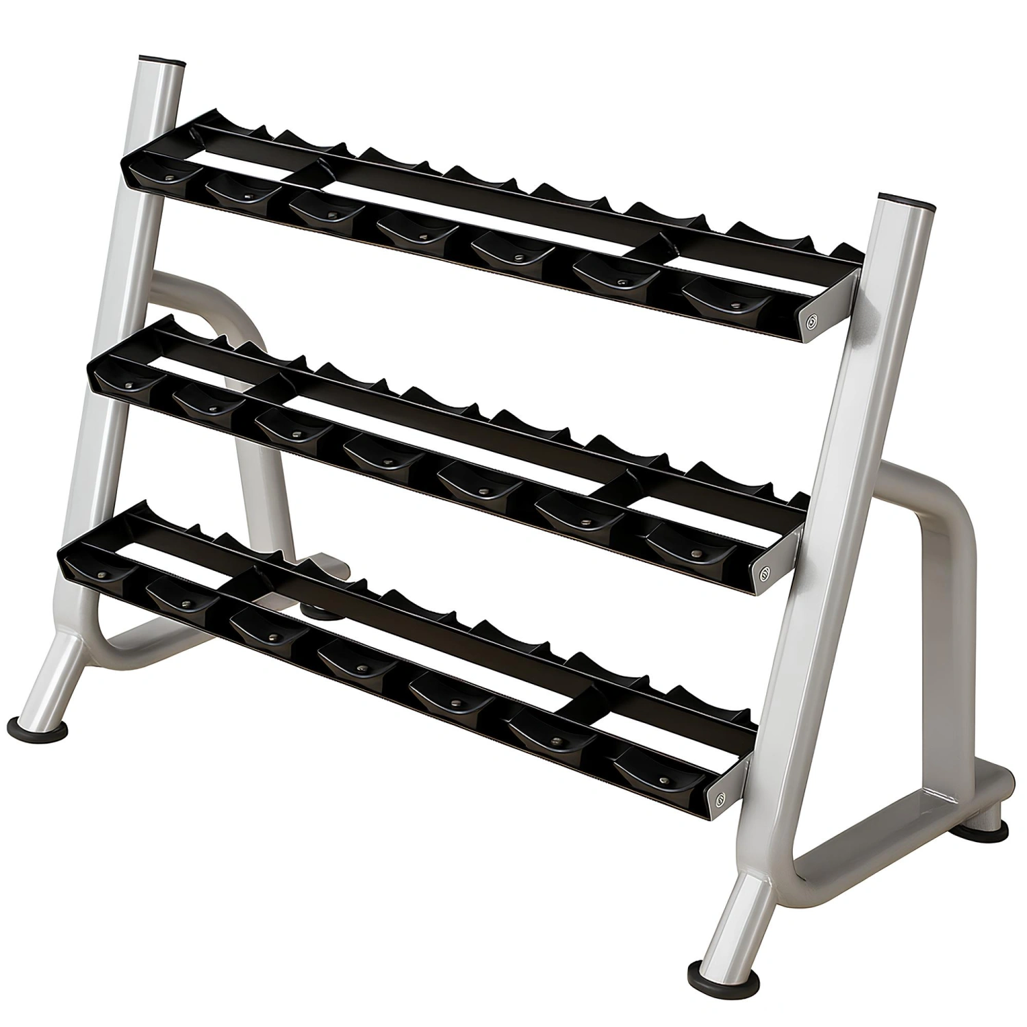 Die Hantelablage mit 3 Böden ist für den Einsatz in professionellen Umgebungen und Fitnessstudios konzipiert. Perfekt für die Organisation von Hanteln in einem PT-Studio, hilft es, den Trainingsbereich aufgeräumt und sicher zu halten, Unordnung zu vermeiden und das Unfallrisiko zu verringern. Dank seiner kompakten Bauweise kann dieses Rack in jeder Ecke des Raumes aufgestellt werden, um den verfügbaren Platz optimal zu nutzen. Es ist ideal sowohl für kleine Wohnräume als auch für größere Fitnessstudios, die eine optimale Organisation benötigen. Die Anordnung der Regale ermöglicht es Ihnen, die Hanteln funktional anzuordnen und so immer maximale Praktikabilität bei den Übungen zu gewährleisten.