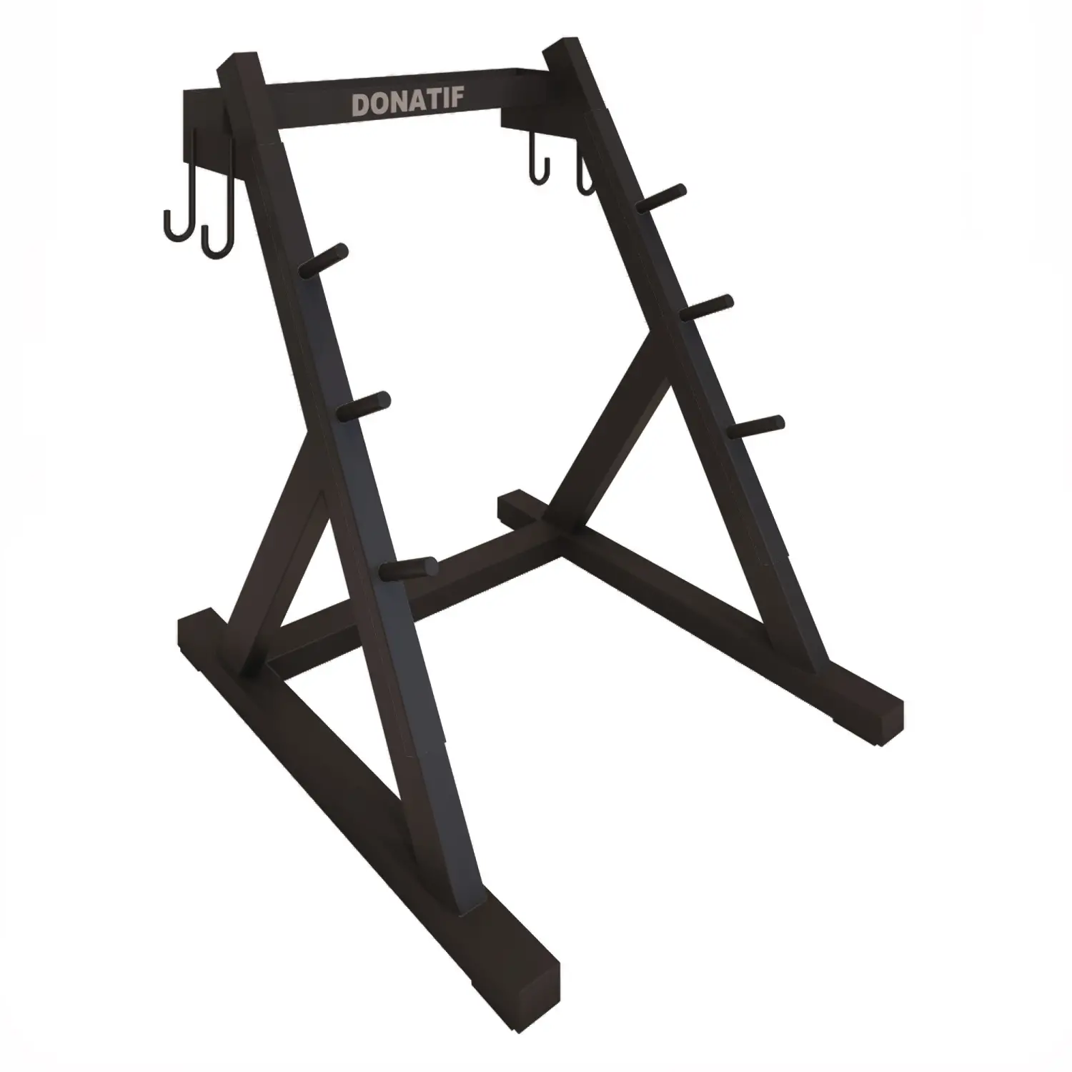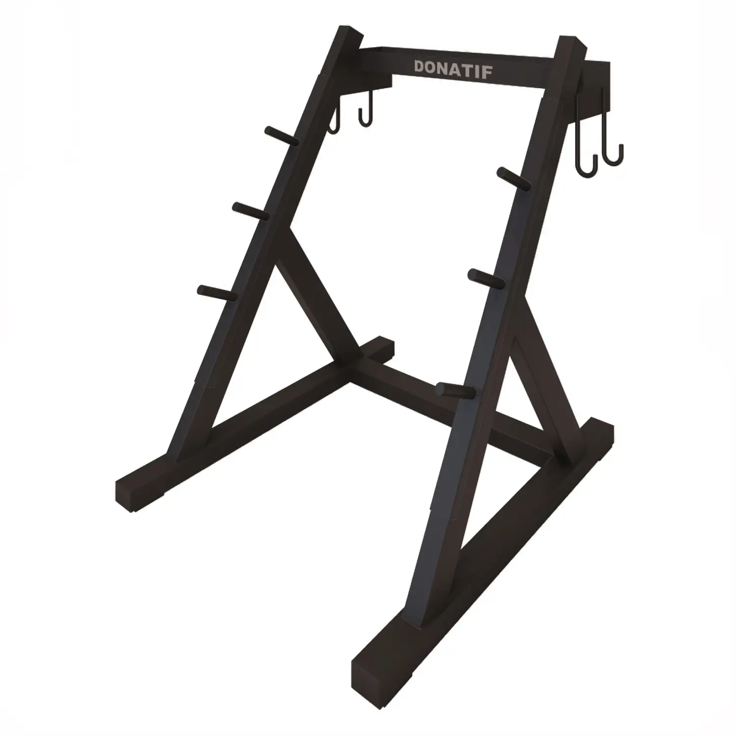 Die Donatif Horizontale Langhantelablage ist das ideale Zubehör für alle, die eine robuste, sichere und vielseitige Aufbewahrungslösung für Langhanteln suchen. Vollständig aus Qualitätsstahl gefertigt und mit Pulverbeschichtung behandelt, garantiert dieses Gestell nicht nur Festigkeit und Haltbarkeit, sondern auch eine moderne und elegante Ästhetik. Die Struktur ist für die Aufnahme von Hanteln unterschiedlicher Größe ausgelegt und gewährleistet eine optimale Organisation auf engstem Raum. Mit einer Tiefe von 76 cm, einer Breite von 76 cm und einer Höhe von 100 cm sowie einem Gewicht von 40 kg bietet er Stabilität, ohne zu viel Platz einzunehmen. Darüber hinaus ist er mit Gummifüßen ausgestattet, um den Boden vor Kratzern zu schützen und für zusätzliche Stabilität zu sorgen, wodurch ein Verrutschen des Racks auch bei schweren Lasten verhindert wird.