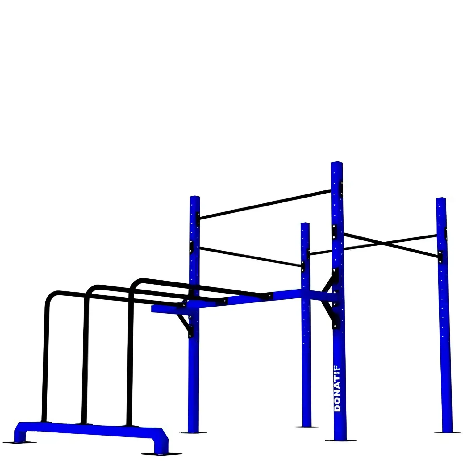 Wenn Sie sich für das Professional Cage Calisthenics Rack von Donatif entscheiden, investieren Sie in eine hochwertige Struktur, die vollständig in Italien entwickelt wurde. Donatif bietet auch die Möglichkeit, die Länge der Stangen, der Parallelstangen und die Farbe der Struktur anzupassen und so auf die spezifischen Bedürfnisse jedes Kunden einzugehen.
