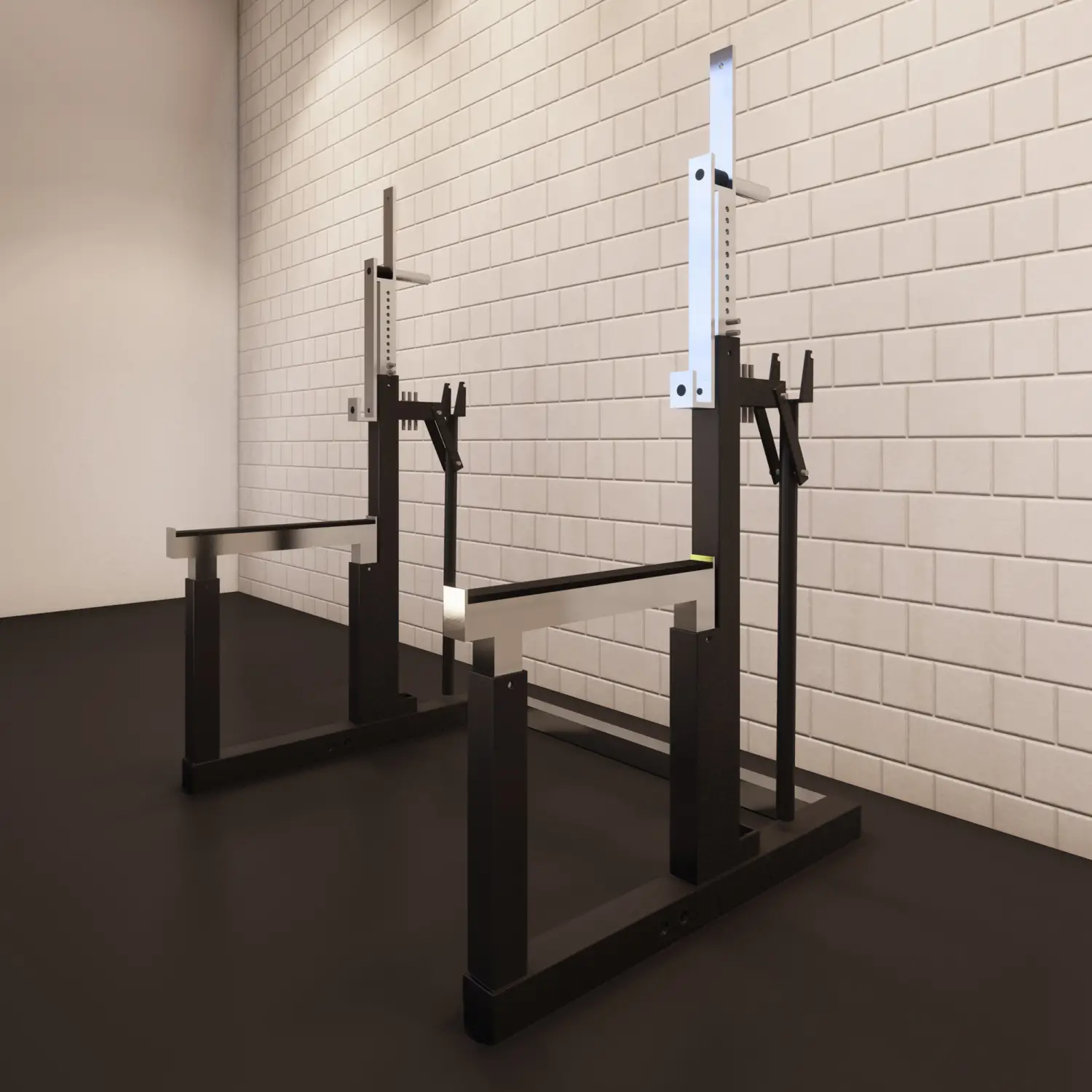 Dieses Rack ist ideal für den professionellen Einsatz in Fitnessstudios, spezialisierten Fitnesscentern und bei Powerlifting-Wettkämpfen. Seine Robustheit und fortschrittlichen Sicherheitsfunktionen machen ihn perfekt für Sportler, die auf hohem Niveau trainieren und eine sichere und zuverlässige Trainingsumgebung gewährleisten. Dank seiner verstellbaren Struktur kann es an die Bedürfnisse jedes Sportlers angepasst werden, sowohl für Kniebeugen als auch für Kreuzheben-Übungen. Durch das kompakte Design eignet es sich auch für Fitnessstudios mit begrenztem Platzangebot, ohne Kompromisse bei der Funktionalität einzugehen. Darüber hinaus können Sie gegen Aufpreis den Montageservice anfordern, der in ganz Italien und im Ausland verfügbar ist, auch an Feiertagen. Wir kümmern uns um eine schnelle und stressfreie Installation.