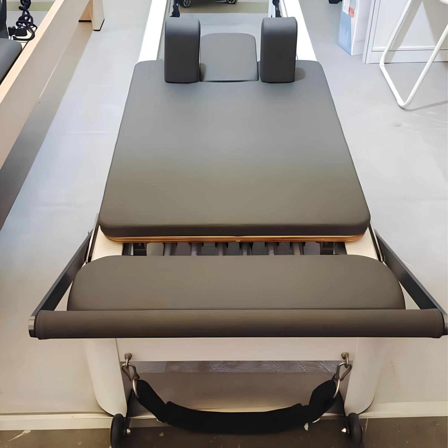 Der Reformer Aluminiumlegierungsrahmen Donatif ist dank seiner Kombination aus Robustheit, Vielseitigkeit und Benutzerfreundlichkeit die ideale Lösung für Pilates-Studios, professionelle Fitnessstudios und High-End-Heimstudios. Dieses Gerät wurde entwickelt, um sowohl den Bedürfnissen derjenigen gerecht zu werden, die zum ersten Mal Pilates machen, als auch erfahrenen Instruktoren, und integriert sich dank seiner kompakten Größe, die es ermöglicht, es sowohl an einer Wand als auch in der Mitte des Raumes zu platzieren, um jeden verfügbaren Meter zu optimieren, ohne die Effektivität des Trainings zu beeinträchtigen.
