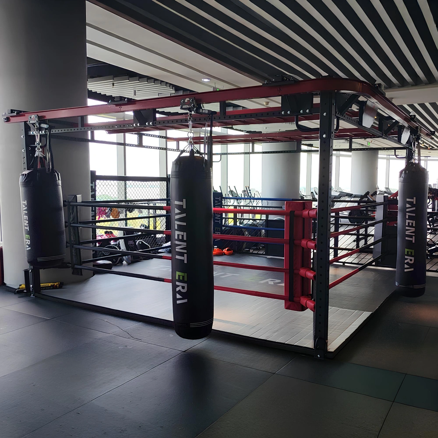 Der Ring mit schwenkbarer Taschenhalterstruktur - SC180 ist für professionelle Fitnessstudios, Sportzentren und Kampfsporthallen konzipiert.