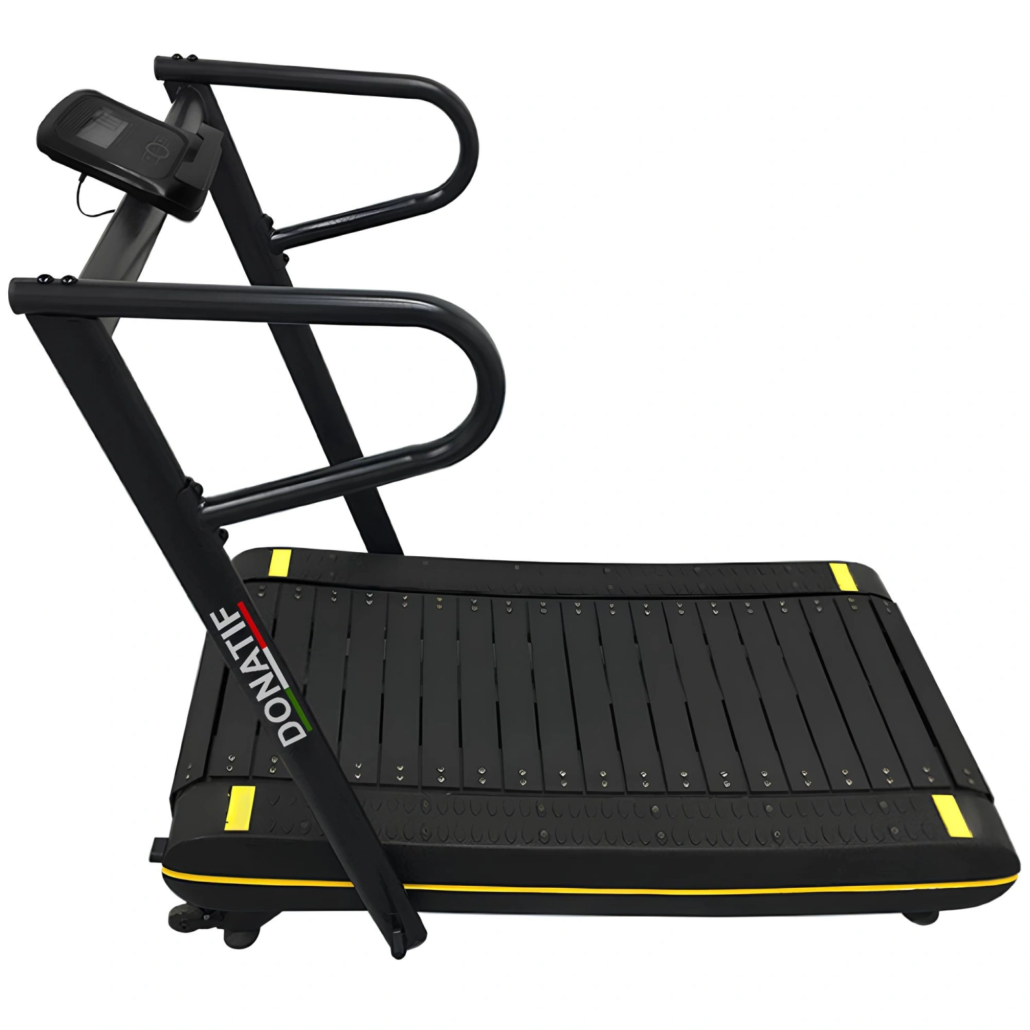 Die Wahl des gebogenen Laufbands – TRC5 bedeutet, in hochwertige Ausrüstung zu investieren, die Innovation und Funktionalität vereint. Seine robuste Bauweise und das ergonomische Design sorgen für Langlebigkeit und Komfort während der Nutzung. Die Möglichkeit, den Widerstand und die Geschwindigkeit manuell an das Tempo des Nutzers anzupassen, bietet ein personalisiertes und vielseitiges Trainingserlebnis. Außerdem macht der Schutz der Gelenke durch das Stoßdämpfungssystem es ideal für diejenigen, die ein effektives Training möchten, ohne die Gesundheit von Knien und Knöcheln zu beeinträchtigen. Die robuste Bauweise sorgt für eine lange Lebensdauer und bietet ein hervorragendes Preis-Leistungs-Verhältnis. Die einfache Transport- und Lagerungsmöglichkeit sowie das Fehlen einer Stromversorgung machen es zu einer ausgezeichneten Wahl für alle, die ein effizientes und praktisches Laufband suchen. Schließlich können Sie auf einen zuverlässigen Kundenservice zählen, der Sie vor und nach dem Kauf unterstützt und so ein sorgenfreies Nutzererlebnis gewährleistet. Wir bieten einen Montageservice an, der gegen Aufpreis in ganz Italien und im Ausland verfügbar ist, sogar an Feiertagen, um maximalen Komfort und eine perfekte Installation zu gewährleisten.