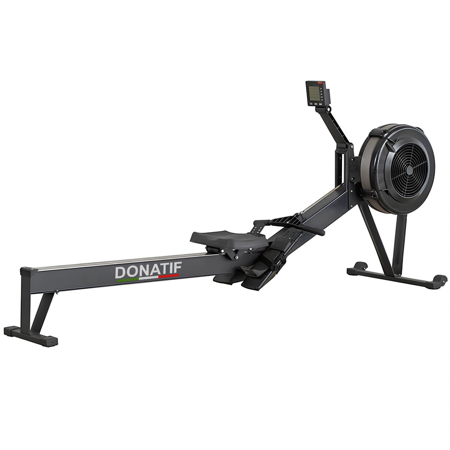 Das Folding Air Rudergerät ist ein Herz-Kreislauf- und Krafttrainingsgerät, das sich durch ein Widerstandssystem auszeichnet, das auf dem Luftstrom basiert, der von einer Lüfterturbine erzeugt wird. Dieser Mechanismus ermöglicht einen Widerstand, der proportional zur Intensität der Anstrengung ist: Je schneller Sie rudern, desto größer ist der Widerstand, auf den Sie stoßen, und bietet so ein progressives und natürliches Rudern, ähnlich wie beim echten Rudern. Ausgestattet mit einem Luftwiderstandssystem garantiert es eine sofortige Reaktion, die proportional zur Intensität des Ruderns ist, und ermöglicht dank der 10-Gang-Einstellung eine präzise Kontrolle der Anstrengung. Die Einschienenbahnlänge von 137 cm sorgt für ein sanftes und stabiles Gleiten, während die faltbare Konstruktion bei Nichtgebrauch Platz spart und sich leicht in beengten Umgebungen verstauen lässt.