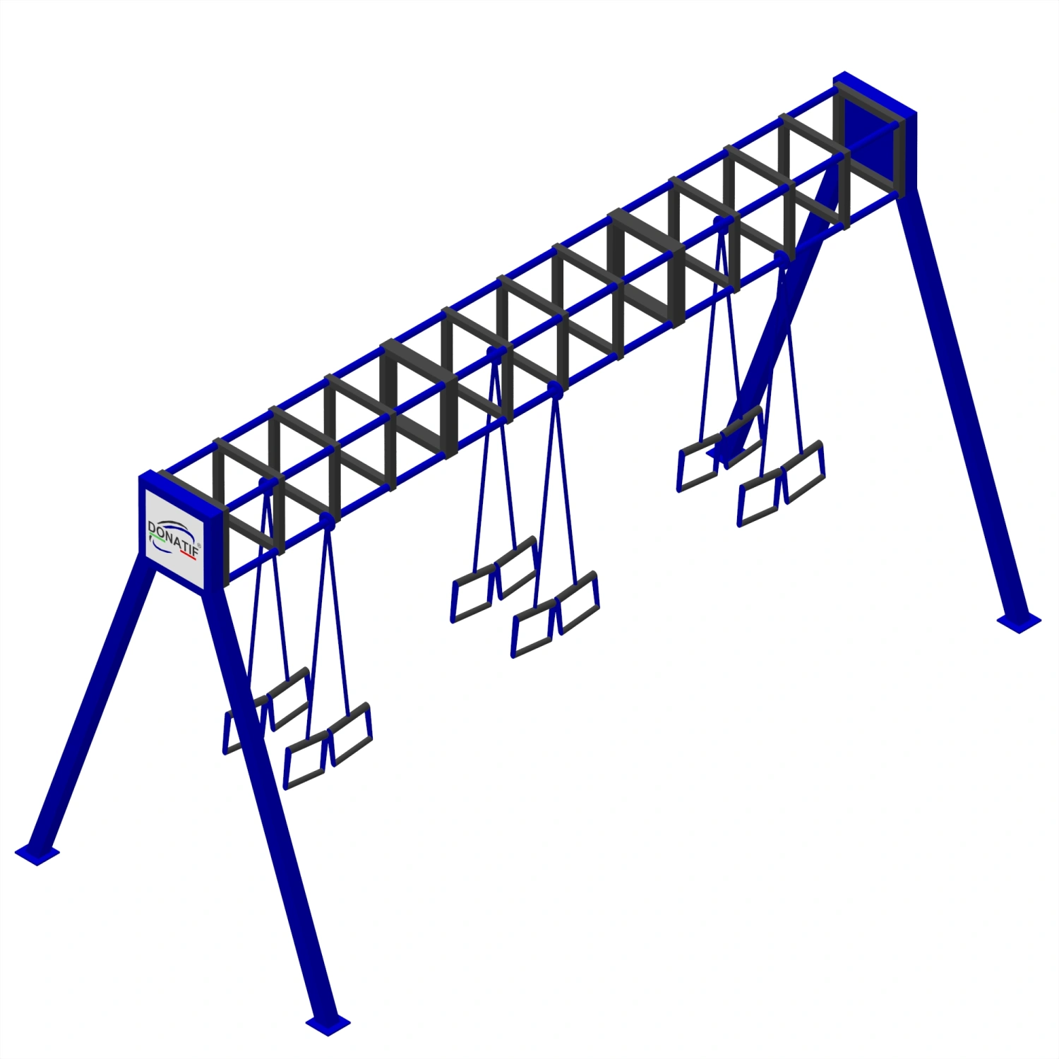 Geben Sie die gewünschten Anpassungen an und klicken Sie auf "Anpassung speichern".Die Suspension Training Structure - CH46 besteht aus hochfestem Stahl mit einem Vierkantrohr von 80x80x3 mm, das auch bei intensiver Nutzung eine Solidität garantiert. Alle Komponenten sind feuerverzinkt, um korrosionsbeständig zu sein, und mit einer Pulverbeschichtung versehen, um Schutz und attraktives Design zu vereinen. Die Standardfarbe ist Schwarz und Blau, mit der Möglichkeit der Anpassung, um sich an jede Umgebung anzupassen.