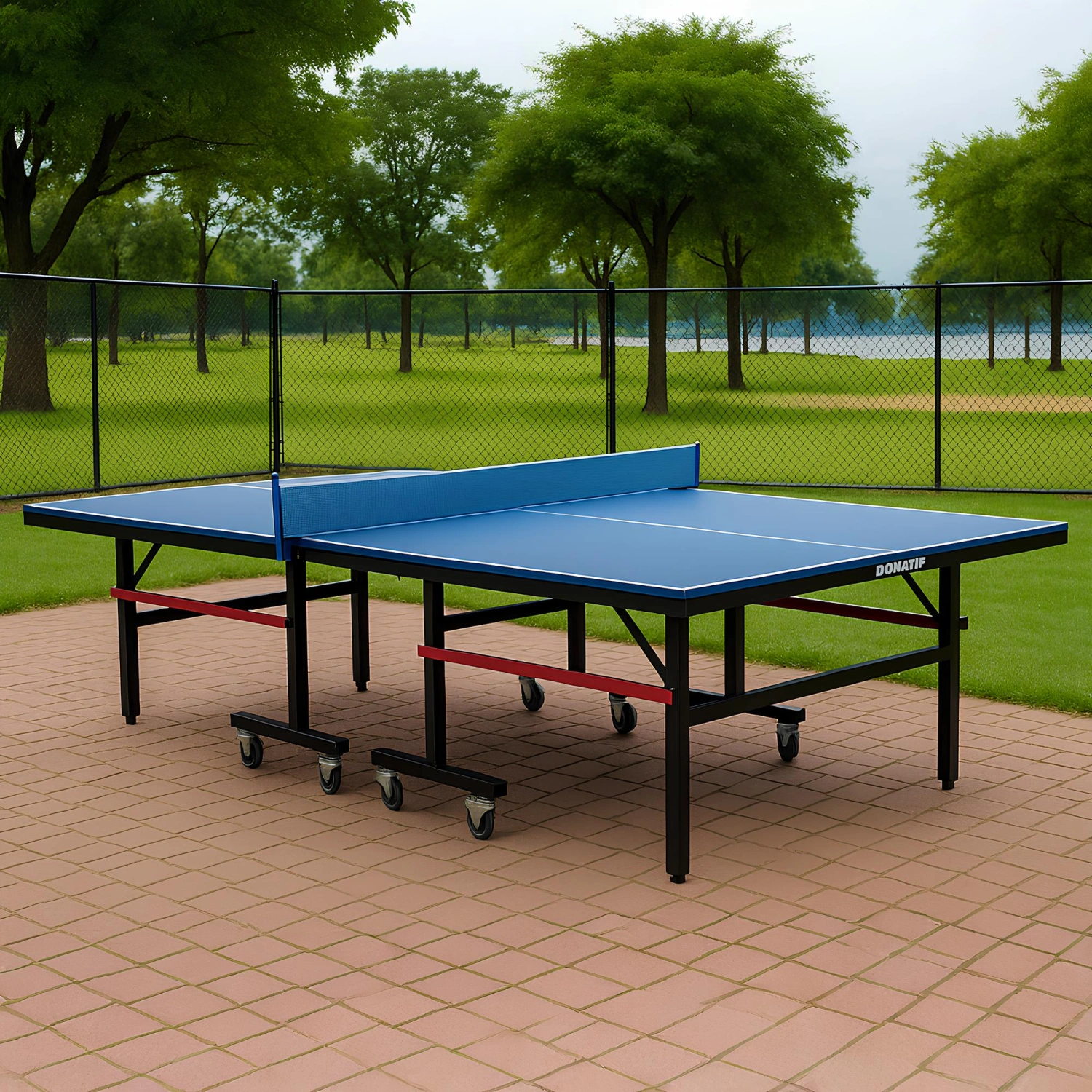 Diese Tischtennisplatte mit integrierten Rädern – COH110 ist für den Einsatz im Freien konzipiert und bietet eine hohe Leistung in Umgebungen wie Gärten, Terrassen, Schulhöfen, öffentlichen Bereichen von Hotels, Campingplätzen und Freizeitzentren, aber auch in Fitnessstudios, Sportzentren, Schulen und Universitätsgeländen und Unternehmensumgebungen, in denen Tischtennis als Freizeitaktivität oder Teil von Wellness-Programmen genutzt wird. Die Qualität der Materialien ermöglicht es, es auch bei wechselnden Wetterbedingungen zu verwenden, ohne die Stabilität oder strukturelle Integrität zu beeinträchtigen. Das Vorhandensein des klappbaren Stativs und der Räder mit Bremsen macht es äußerst praktisch, sowohl zum Bewegen als auch zum Sichern während des Spiels. Egal, ob es sich um eine Herausforderung mit Freunden, eine Sporttrainingseinheit oder eine aktive Pause im geschäftlichen oder touristischen Kontext handelt, der Donatif Tisch passt sich an alle Situationen an und sorgt für einen flüssigen Spielfluss und Zuverlässigkeit. Es ist die perfekte Wahl sowohl für den Amateur als auch für Sport- und Schulleute, die eine vielseitige und langlebige Ausrüstung wünschen.