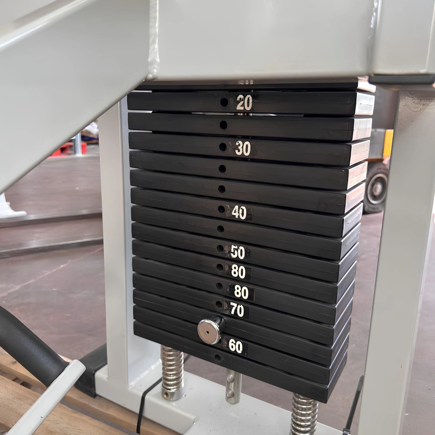 Der 95 kg schwere Gewichtsblock mit 19 Platten à 5 kg bietet eine schrittweise Skalierbarkeit der Last: nützlich sowohl für Anfänger als auch für erfahrene Sportler. Die Tatsache, dass die Zahlen auf den Platten nicht dem tatsächlichen Gewicht entsprechen, muss betont werden, um die Sicherheit und Transparenz der Verwendung zu gewährleisten.