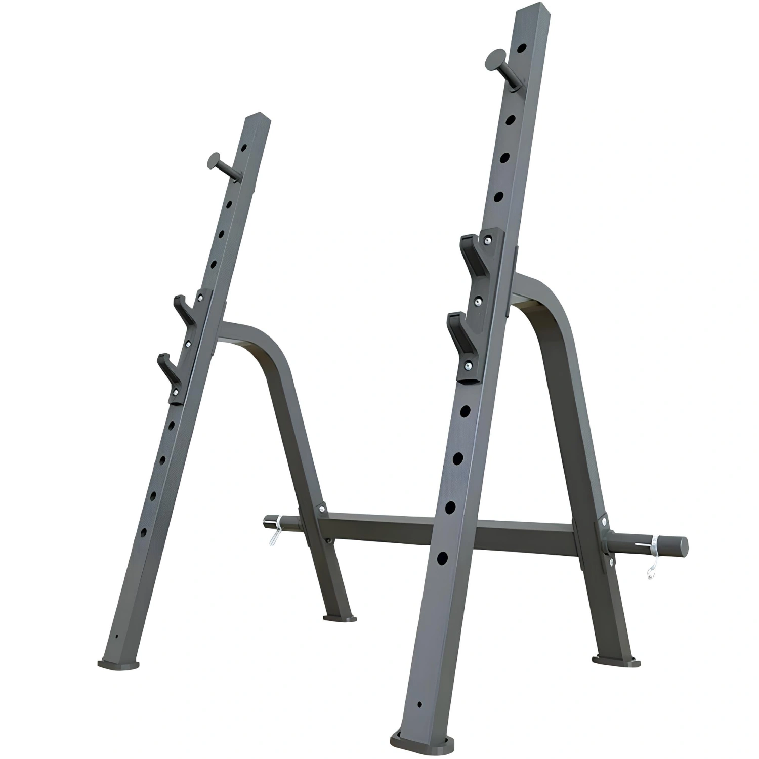 The Adjustable Squat Rack Stand is an essential piece of equipment for those who want to boost their workout routine right at home. Made of high-quality materials, the rack is constructed of steel with a square tube construction of 50x50x1.5 mm, which ensures good sturdiness. With a wide and durable base, you can focus on your workout without worrying about the stability of the equipment.