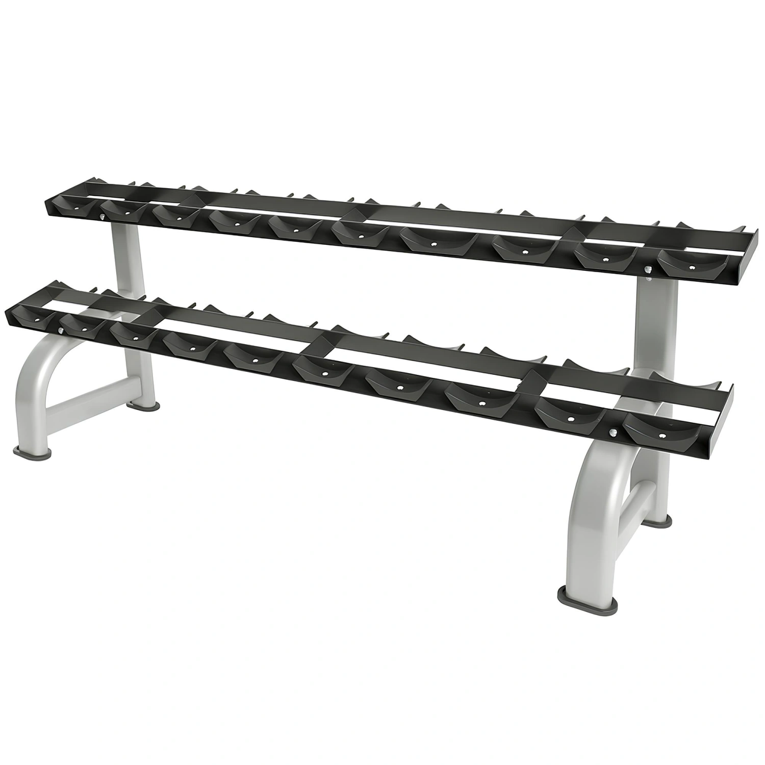 The Dumbbell Rack 2 Shelves is designed to be used in professional environments. Perfect for organizing dumbbells in a gym, it helps to keep the training area tidy and safe, preventing clutter and reducing the risk of accidents. Thanks to its compact design, this rack can be placed in any corner of the room, making the most of the available space. It is ideal for both small domestic spaces and larger gyms that need optimal organization. The arrangement of the shelves allows you to arrange the dumbbells in a functional way, always ensuring maximum practicality during exercises.