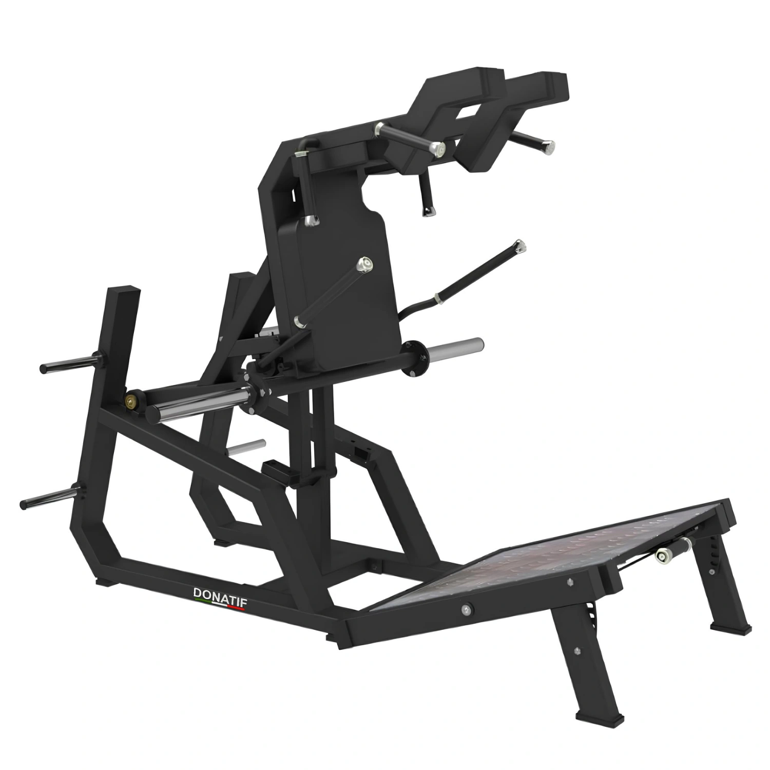 Choosing the Hack Squat Machine - FMT means investing in superior quality equipment, capable of guaranteeing high performance over time and a comfortable and safe training experience. The combination of a solid design and well-thought-out biomechanics makes it an ideal choice for commercial gyms, athletic training centers and high-end home gyms. Thanks to its ability to offer a complete workout of the lower body, it is the perfect tool for those who want to achieve concrete results, improve their strength and enhance sports performance in a targeted and professional way.