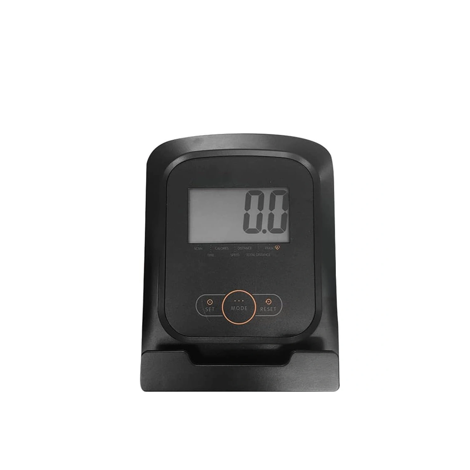 The Curved Treadmill - TRC5 is a state-of-the-art piece of equipment designed to provide a natural and immersive running experience. The treadmill is designed to provide an efficient and practical workout experience. Its foldable construction saves space, making it ideal for home environments with limited space. Made of a sturdy steel alloy and equipped with rail rails with high-strength nylon inserts, it ensures durability, stability and smoothness during use. The shock-absorbing design integrates different shock absorption technologies, effectively protecting knees and ankles, and ensuring optimal comfort during training. The digital star display offers an intuitive interface that allows you to easily monitor parameters such as speed, time, distance and calories burned, making it easy to manage your workout. The robust structure, with a weight of 40 kg, supports a maximum user load of 150 kg, and measures 121x68x112 cm, ensuring stability and safety during use. The resistance is manually adjustable, giving you the option to customize the intensity of your workout. This treadmill is suitable for both light jogging sessions and high-intensity runs, this is also thanks to its running surface is 120x40 cm wide . In addition, it does not require an electrical power supply, as it does not have a motor.