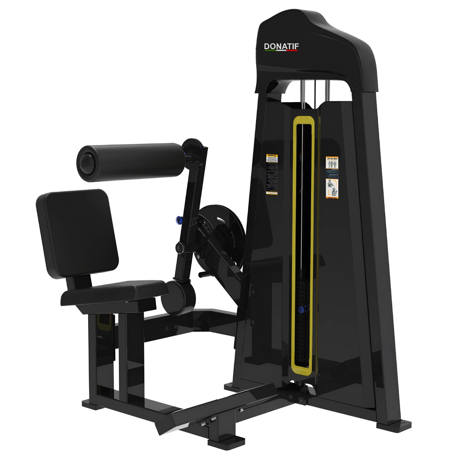 La máquina está equipada con un paquete de pesas incluido de 75 kg, que puede aumentarse en función de las necesidades del usuario. Se han cuidado todos los detalles para garantizar la máxima comodidad y seguridad durante el uso: acolchado de espuma rígida, sistema de estabilización de la espalda y componentes ajustables como el asiento, el cojín de rodillo y la base del reposapiés. Este producto está certificado para uso profesional, por lo que es perfecto para gimnasios y centros de fitness.