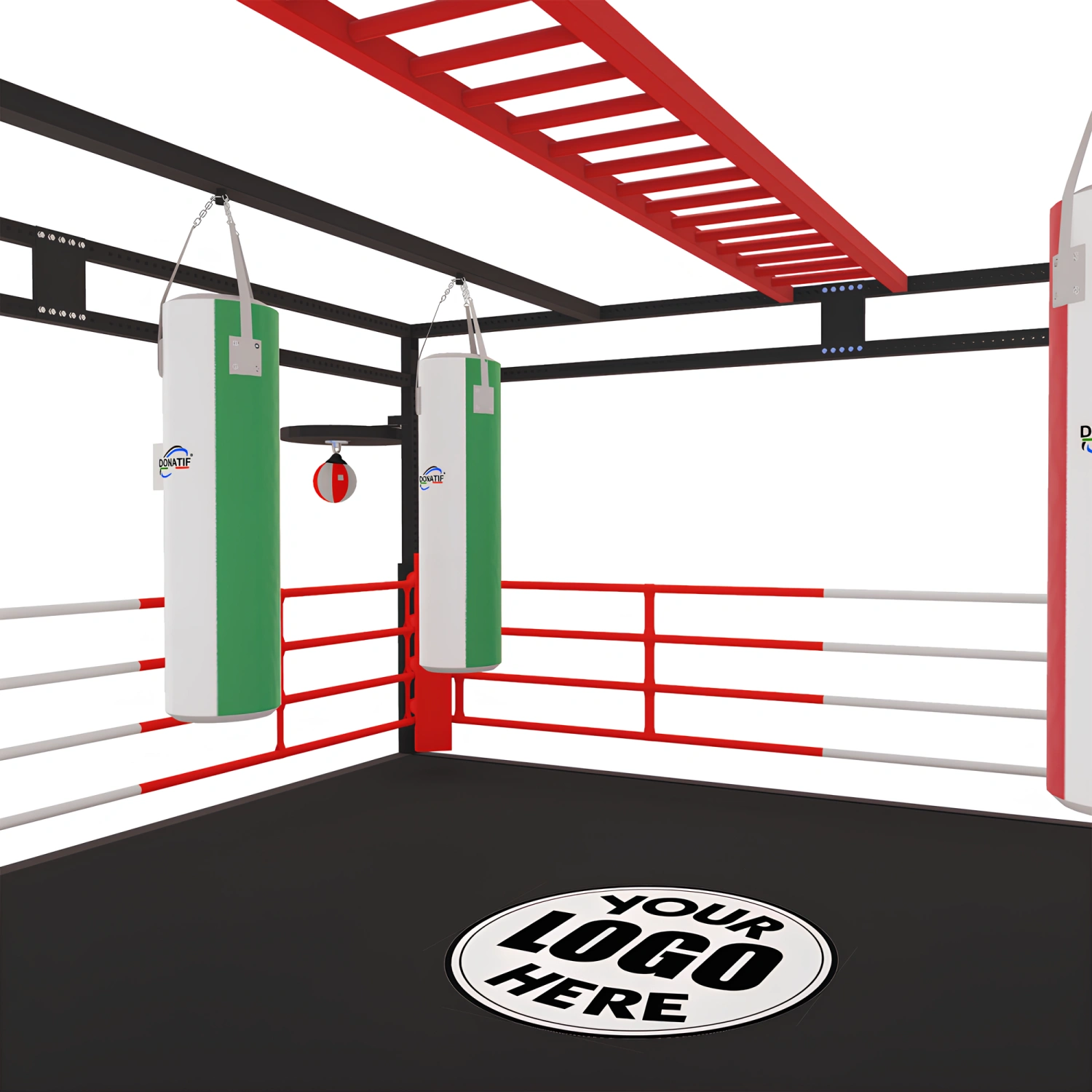 Elegir el Anillo con Estructura Multifunción y Bolsas, Peras - SC170 por Donatif significa invertir en un producto funcional, robusto y totalmente personalizable, diseñado para satisfacer las necesidades de quienes desean ofrecer a sus clientes una experiencia de entrenamiento completa y de alto nivel. La posibilidad de personalizar cada detalle, desde el tamaño del anillo y las bolsas/peras hasta los colores y el logotipo de tu gimnasio, te permite crear un producto único que se integra perfectamente en tu entorno deportivo. Además, la capacidad de acomodar a varias personas al mismo tiempo y la extrema versatilidad de la estructura le permiten organizar sesiones de capacitación intensas y variadas, maximizando la eficiencia y la calidad de sus cursos. Un producto único, totalmente diseñado en Italia, donde se unen estilo, funcionalidad y pasión.