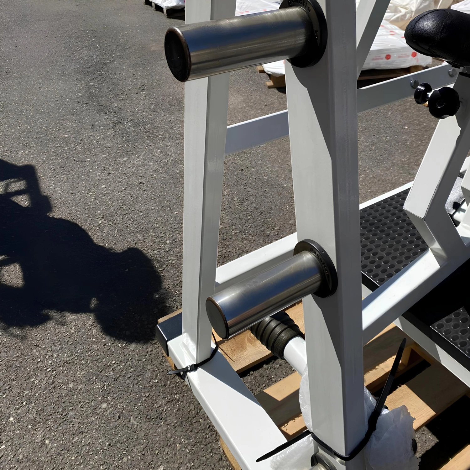 Gracias a la presencia de la plataforma trasera, también es posible realizar ejercicios con total autonomía, o facilitar el apoyo del asistente durante el entrenamiento. Los pasadores de 6 x 50 mm permiten colocar la barra a la altura más adecuada, haciendo que la herramienta sea accesible para usuarios de diferentes alturas y niveles de experiencia.