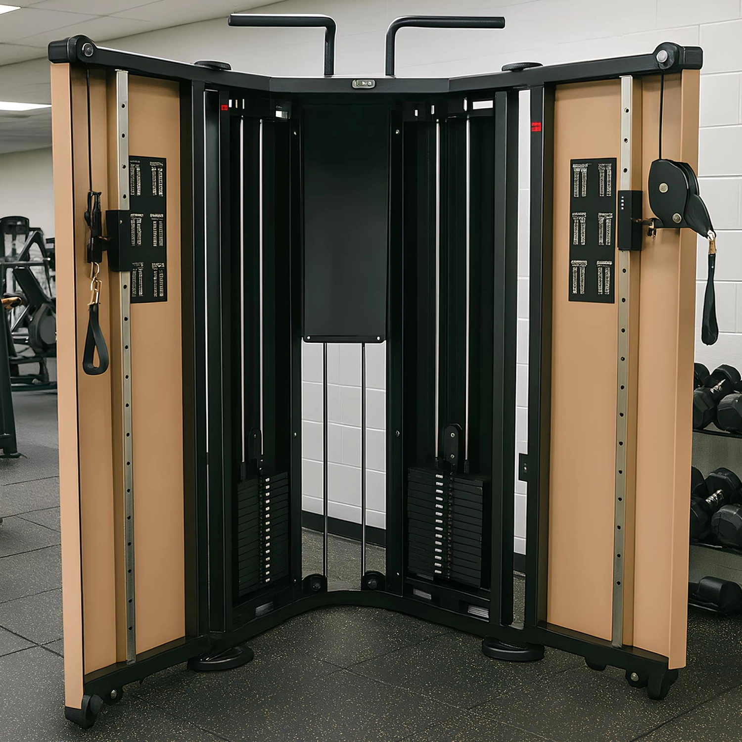Los cables cruzados plegables que ahorran espacio son un equipo muy versátil diseñado para adaptarse a múltiples configuraciones de entrenamiento, incluso en entornos con espacio limitado. Gracias al sistema de cables cruzados de relación 1:1 y a los pesos que se pueden aumentar hasta 100 kg por lado, es posible realizar una gran variedad de ejercicios destinados a mejorar la fuerza, la resistencia y la movilidad, trabajando todos los grupos musculares. Ideal tanto para uso profesional en el gimnasio como para gimnasios avanzados en casa, este equipo permite sesiones de entrenamiento completas o enfocadas, con la máxima fluidez en el movimiento. La popularidad cada vez mayor de estos cables cruzados en gimnasios y estudios de fisioterapia confirma su eficacia, fiabilidad y practicidad, combinando un alto rendimiento y un tamaño reducido.