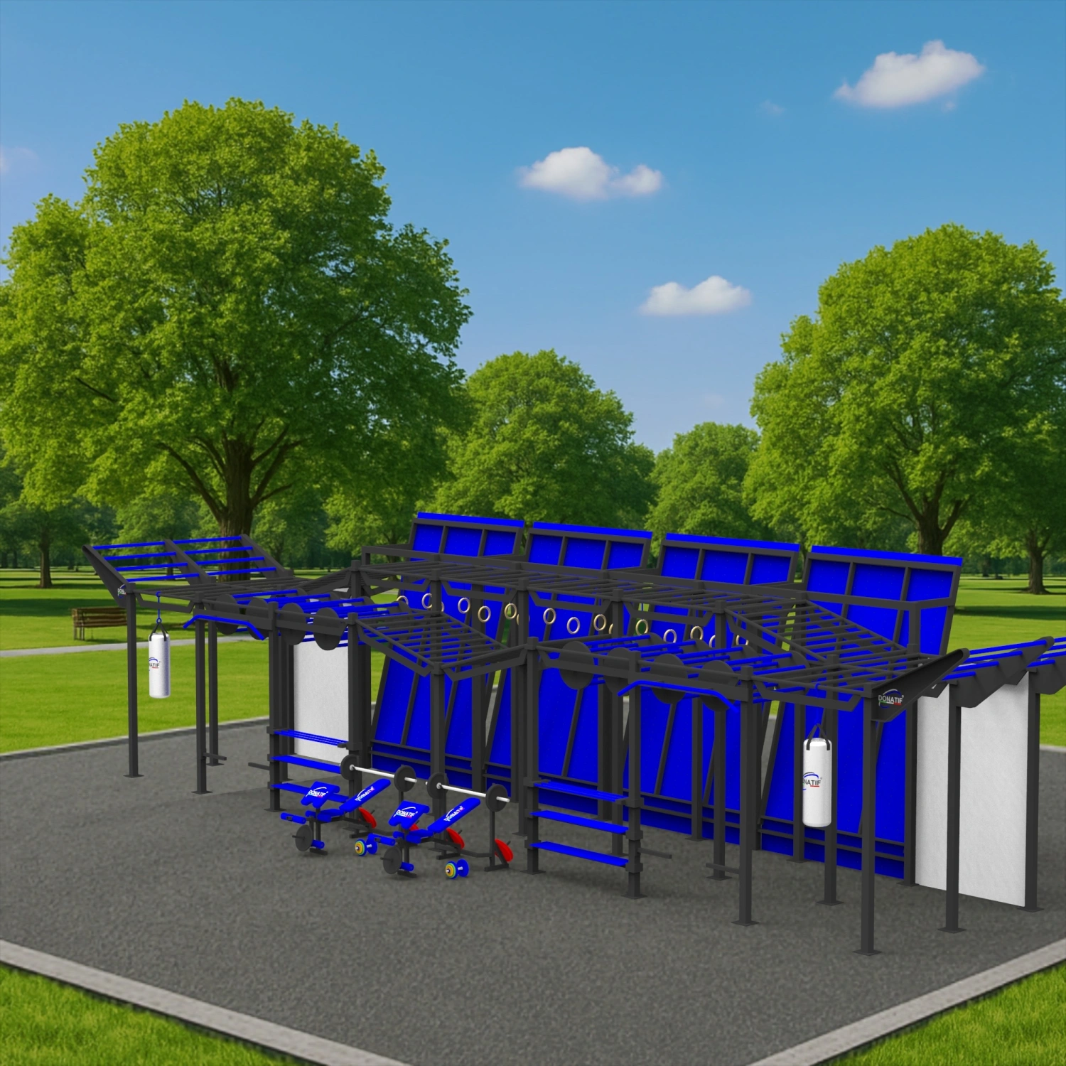 Elegir la Estructura de Calistenia de Parkour - CH19 significa invertir en una estructura de alto rendimiento que combina ingeniería, estética y funcionalidad en un solo proyecto. Cada detalle ha sido diseñado para ofrecer una experiencia de formación segura, atractiva y escalable, con una estructura resistente, elegante y preparada para acoger la identidad visual de cada cliente. La calidad de construcción garantizada por Donatif y la solidez del acero tratado hacen del CH19 un punto de referencia para aquellos que desean elevar su espacio deportivo con una estructura impactante construida para durar en el tiempo.
