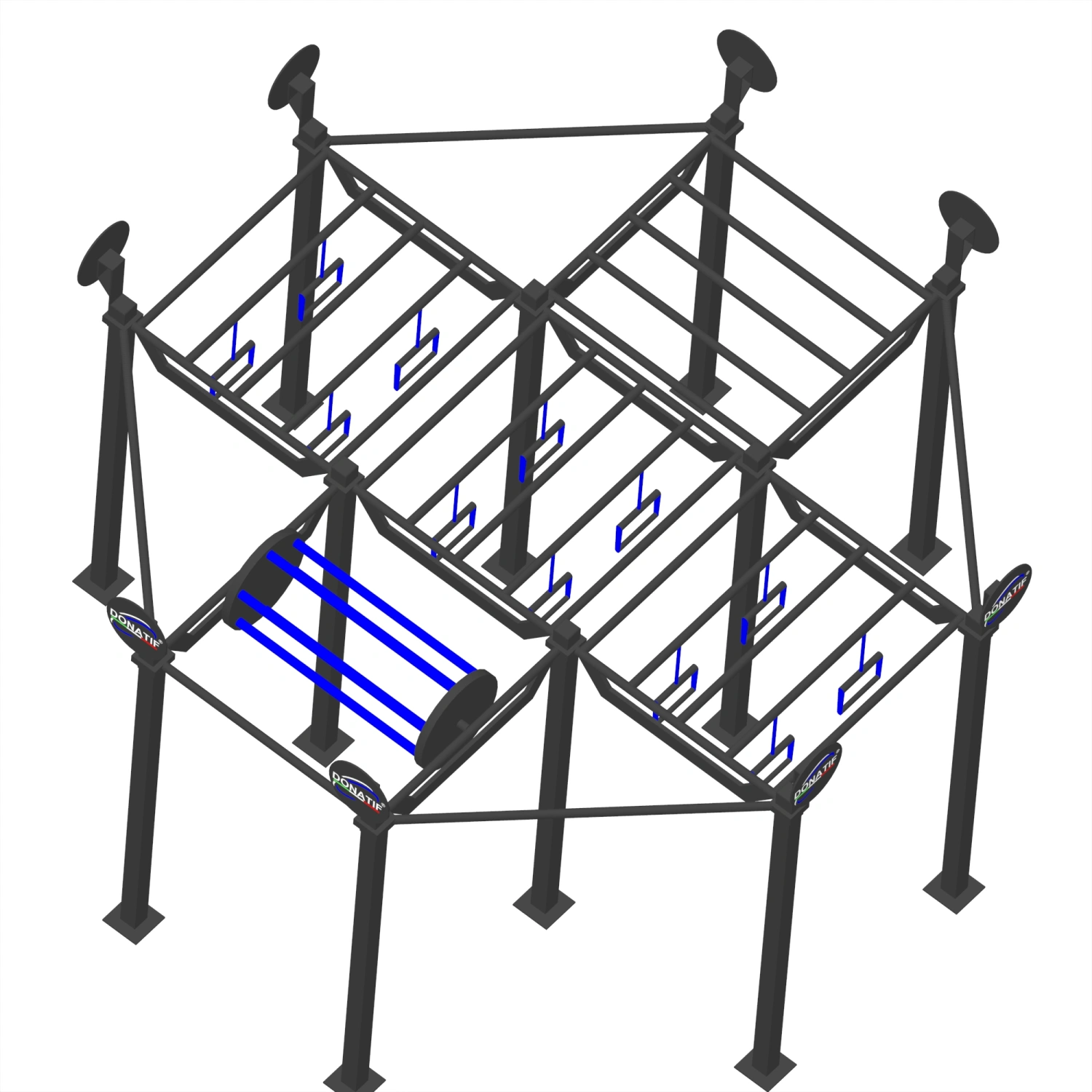 Indica las personalizaciones que deseas y haz clic en 'Guardar personalización'La Estructura de Calistenia Octogonal - CH41 es una estructura de calistenia profesional diseñada específicamente para exteriores, capaz de combinar solidez, resistencia y versatilidad en un solo sistema. Fabricado íntegramente en acero de alta resistencia con un tubo cuadrado de 80x80x3 mm, está diseñado para garantizar la máxima durabilidad y seguridad incluso en condiciones de uso intensivo y continuo. Cada componente se somete a un tratamiento de galvanizado en caliente y posterior recubrimiento en polvo, un proceso avanzado que garantiza una alta protección contra los agentes atmosféricos, la corrosión, los arañazos y el desgaste, lo que lo hace adecuado para cualquier contexto climático y perfecto para instalaciones permanentes. Las dimensiones de la estructura -392 cm de profundidad, 392 cm de ancho y 290 cm de alto- le confieren una arquitectura compacta pero al mismo tiempo extremadamente funcional, capaz de albergar una gran variedad de módulos y equipos para diferentes ejercicios. Con un peso total de 350 kg, el CH41 ofrece una estabilidad superior, capaz de garantizar seguridad y comodidad incluso durante el entrenamiento en grupo o ejercicios particularmente dinámicos. Las barras de dominadas, de 120 cm de largo y con un diámetro de 33 mm, están diseñadas con precisión para ofrecer un agarre ergonómico y cómodo, adecuado tanto para quienes dan sus primeros pasos en calistenia como para atletas experimentados que buscan un rendimiento avanzado.