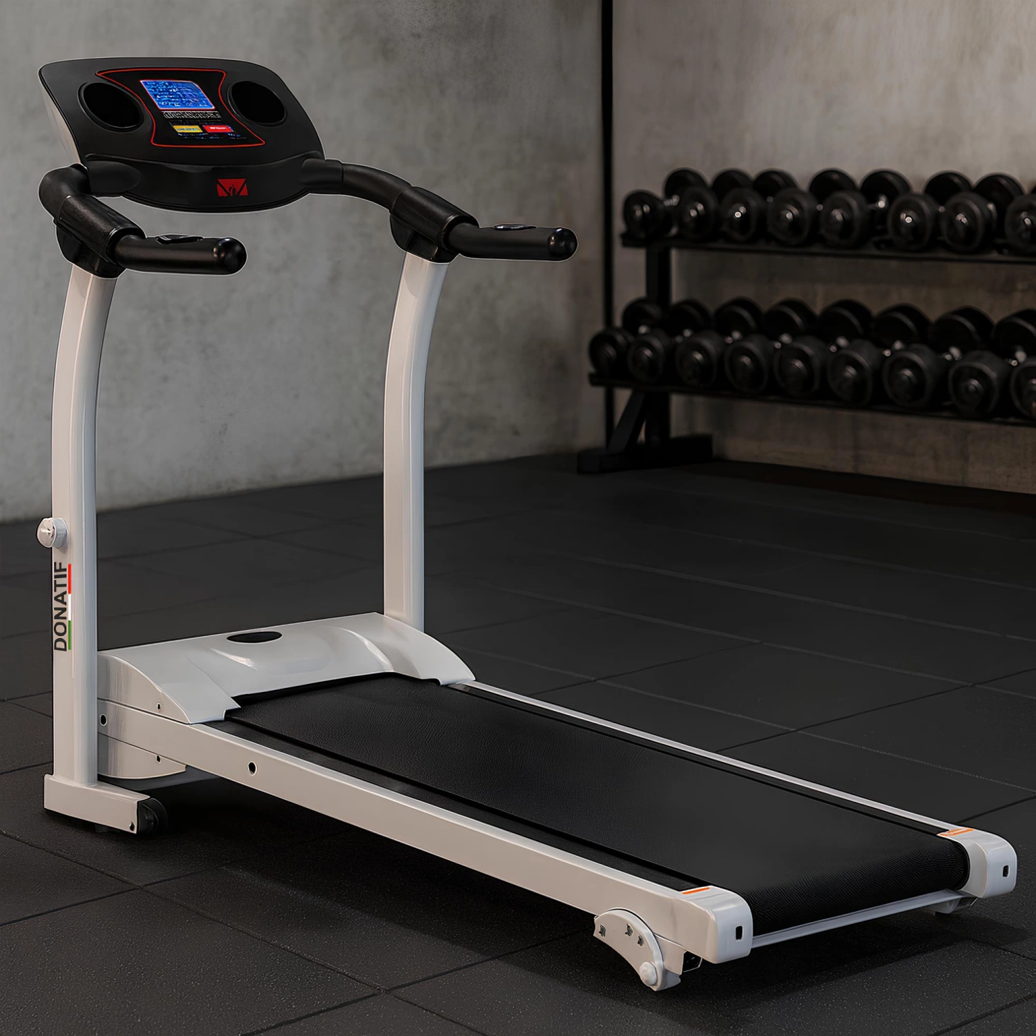 La Cinta de Correr Inclinada de 3 Niveles - TR25 está diseñada para proporcionar una experiencia de entrenamiento completa y cómoda directamente en tu hogar. Equipado con un potente motor de alto rendimiento con 2. 0 HP potencia máxima para aceleración rápida y 0. 65 CV de potencia continua, perfecta para uso regular y prolongado. La estructura de acero garantiza resistencia y durabilidad. La cinta está equipada con un sensor de frecuencia cardíaca, que te permite monitorizar tu frecuencia cardíaca durante el ejercicio. La pantalla mide 3. 5 pulgadas y ofrece una interfaz intuitiva que te permite monitorizar fácilmente parámetros como la velocidad, el tiempo, la distancia y las calorías quemadas, facilitando la gestión de tu entrenamiento. La superficie de correr mide 120x40 cm de ancho y, cuando está desplegada, la cinta mide 132,5 x62x 107,3 cm, ofreciendo una amplia superficie para un entrenamiento cómodo y seguro, mientras que, cuando está cerrada, mide 33x62x107,3 cm. La construcción robusta, que pesa 26 kg, soporta una carga máxima de 90 kg, garantizando estabilidad y seguridad durante su uso. La cinta TR25 también está equipada con conectividad Bluetooth y MP3 para música, lo que te permite escuchar tus listas de reproducción favoritas durante el entrenamiento, haciendo que cada sesión sea más motivadora. El diseño plegable ahorra espacio cuando no se usa, lo que lo hace ideal para entornos domésticos con espacio limitado.