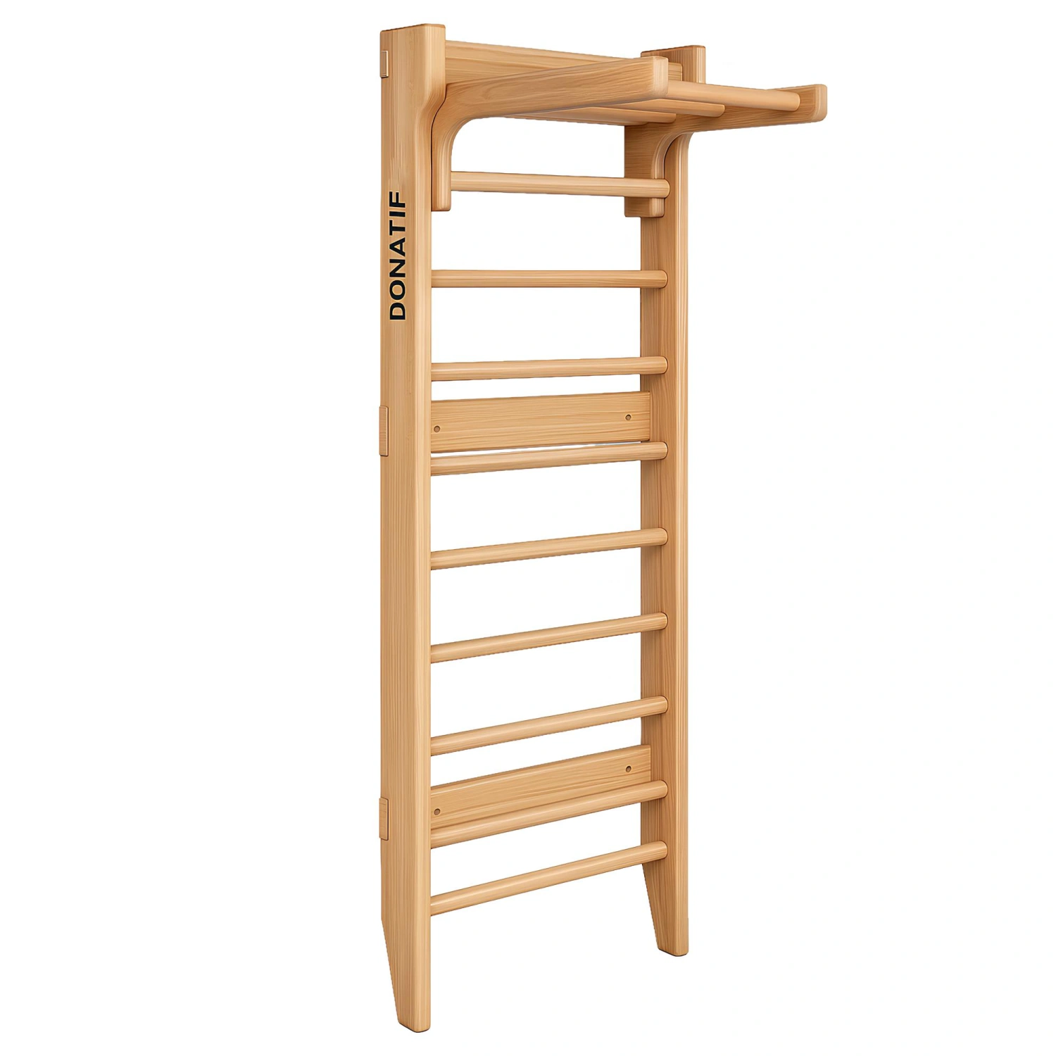 Las Espalderas PlegablesDonatif es una solución profesional diseñada para el entrenamiento funcional, el entrenamiento atlético y la rehabilitación motora. Está fabricado en madera de alta calidad, acabado con barniz transparente protector, lo que realza su estética natural y garantiza su durabilidad en el tiempo. La estructura incluye 10 peldaños redondos, una barra de dominadas superior y una escalera inclinada. Cada componente está diseñado para garantizar la resistencia estructural, la estabilidad durante el uso y la integración armoniosa. El mecanismo de plegado permite cerrar el respaldo en pocos instantes, por lo que es perfecto para contextos en los que se requiere versatilidad y una gestión inteligente del espacio. Gracias a su tamaño compacto y a su diseño que ahorra espacio, es ideal para estudios de entrenamiento personal, boxes de entrenamiento funcional, centros de fisioterapia y escuelas deportivas. El respaldo Donatif está diseñado para ofrecer la máxima solidez estructural, gracias al cuidado de los materiales y las proporciones. Los paneles laterales tienen un grosor de 30 mm, lo que garantiza una alta resistencia incluso bajo cargas intensas. La estructura está reforzada por una tira trasera de 18 mm, que garantiza estabilidad y rigidez durante el uso. Los peldaños redondos, con un diámetro de 33 mm, ofrecen un agarre cómodo y seguro para todo tipo de ejercicios. Las dimensiones totales de las espalderas son de 80x14x195 cm, lo que la convierte en una solución compacta y robusta, ideal para entornos profesionales como gimnasios, estudios de fisioterapia o gimnasios domésticos avanzados.