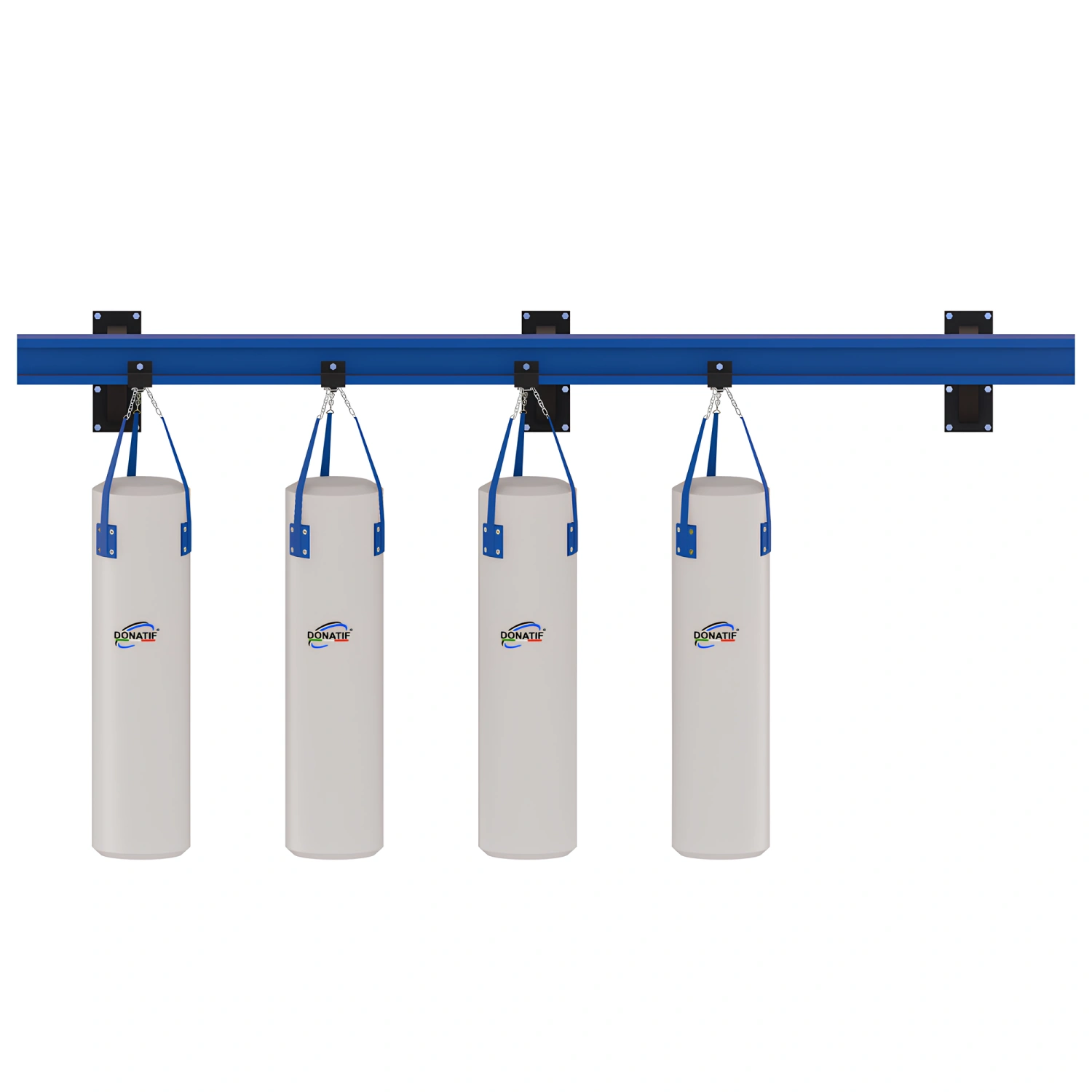 Cada detalle es personalizable: peso y tamaño de las bolsas, colores, tamaño de la estructura e incluso la inserción del logotipo de tu gimnasio.