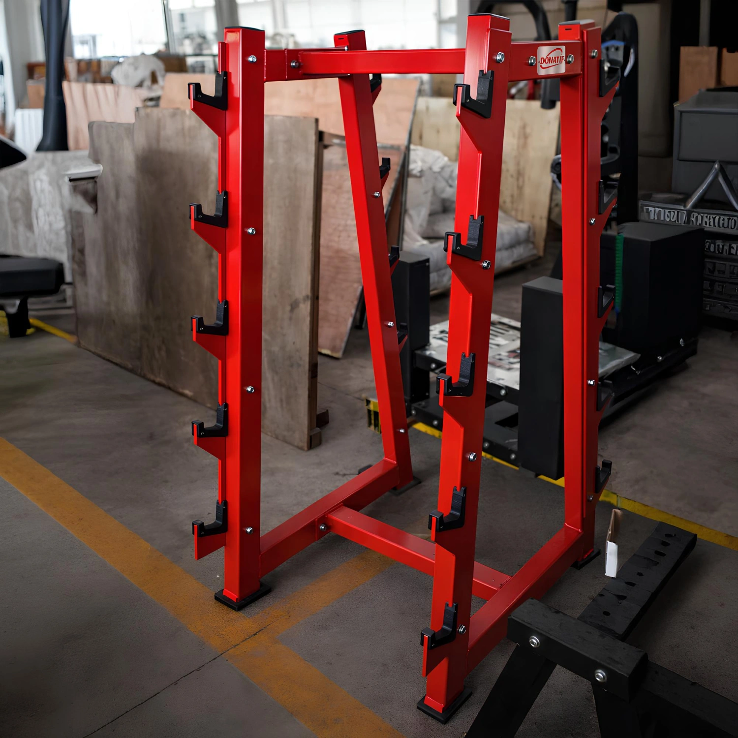 Este rack no solo optimiza el espacio disponible, sino que también protege las barras de arañazos y deformaciones, manteniéndolas en óptimas condiciones para cada sesión de entrenamiento. La disposición de los estantes está diseñada para garantizar un fácil acceso y una organización impecable, lo que convierte al Barbell Rack - RFA en un artículo imprescindible en cualquier gimnasio profesional o gimnasio en casa bien equipado.