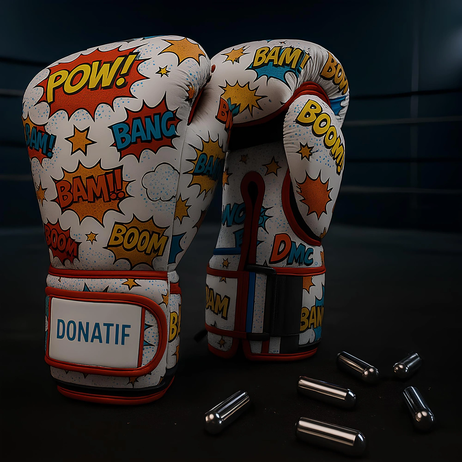 Indica las personalizaciones que deseas y haz clic en 'Guardar personalización'Los guantes de boxeo Design Cartoon - GB30 están diseñados para ofrecer fuerza, resistencia y protección tanto a atletas experimentados como a aquellos que desean llevar el entrenamiento al siguiente nivel. Inspirados en la tradición de los guantes de bolsa y actualizados con tecnología de carga variable, representan el equilibrio perfecto entre intensidad progresiva y construcción técnica avanzada. Fabricados con materiales de alta calidad y equipados con una estructura reforzada, están diseñados para maximizar el desarrollo de la fuerza y la velocidad, gracias a un sistema de pesas integrado que le permite aumentar gradualmente la carga durante el entrenamiento. Cada guante incluye una cremallera trasera para insertar 1, 2, 3 o 4 pesos por guante, hasta un total de 4,5 libras (≈ 2,04 kg). Esta configuración modular permite un entrenamiento personalizado y progresivo. La protección de la mano, la muñeca y los nudillos sigue siendo excelente incluso con los pesos insertados, mientras que la estructura sólida garantiza durabilidad y rendimiento constante. Los guantes GB30 Donatif están diseñados para ofrecer una experiencia de entrenamiento completa y específica, sin sacrificar la calidad profesional.