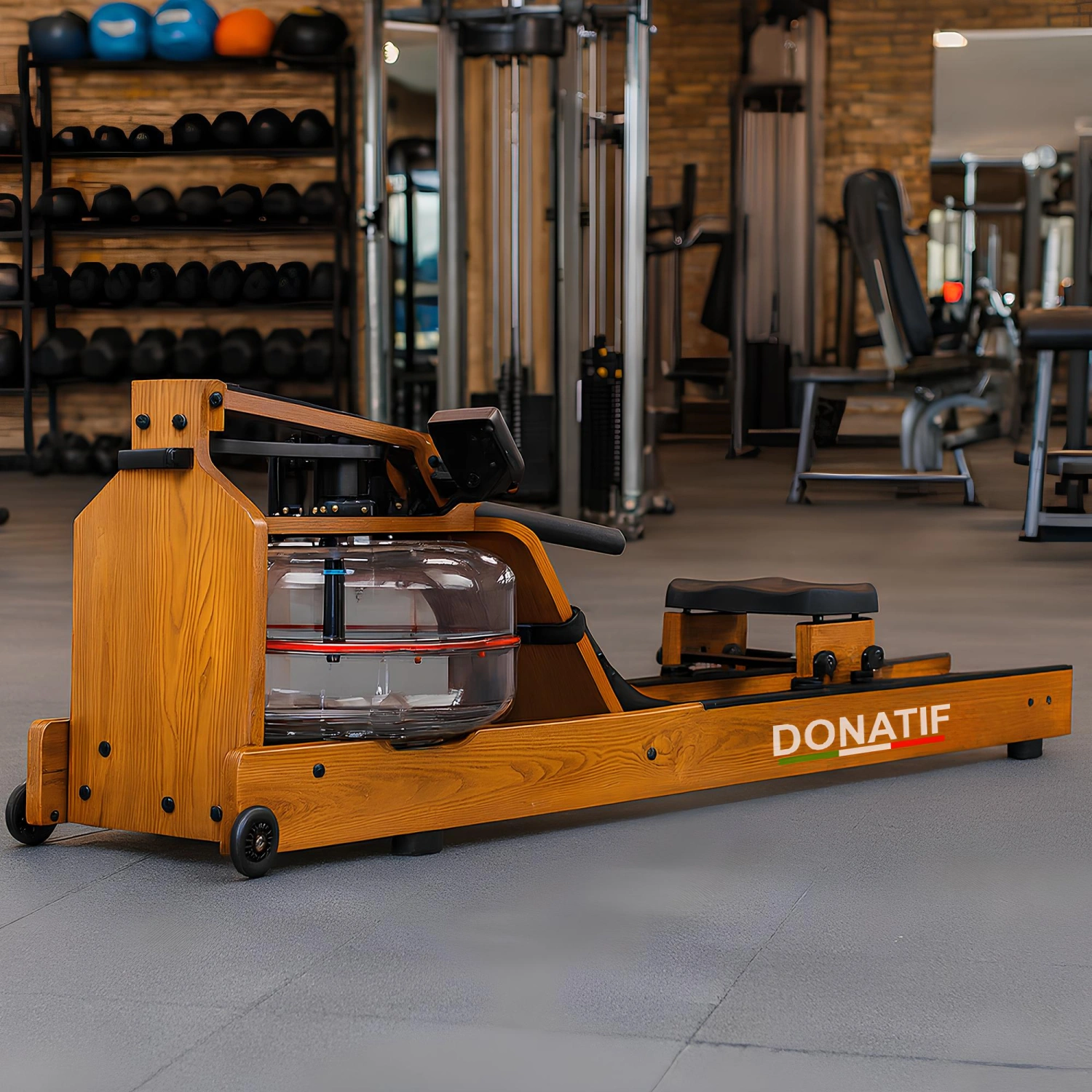 La máquina de remo de agua con Bluetooth está diseñada para ofrecer una experiencia de entrenamiento realista y efectiva, combinando materiales de alta calidad y tecnología avanzada. Fabricado en roble macizo, garantiza resistencia, durabilidad y elegancia, adaptándose a cualquier ambiente. Ofrece una estructura robusta y compacta con una profundidad de 215 cm, una anchura de 53 cm y una altura de 60 cm, y con un peso de 34 kg, lo que la hace adecuada incluso para espacios limitados. Además, la máquina de remo de agua es más silenciosa que las máquinas de remo de aire, pero produce un sonido de agua que fluye naturalmente. No requiere instalación: está listo para usar simplemente agregando agua.