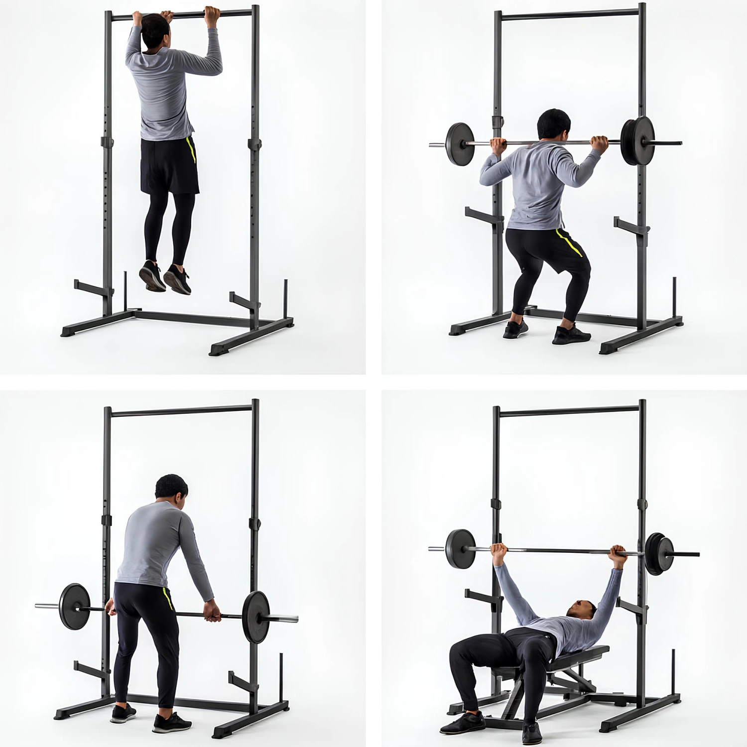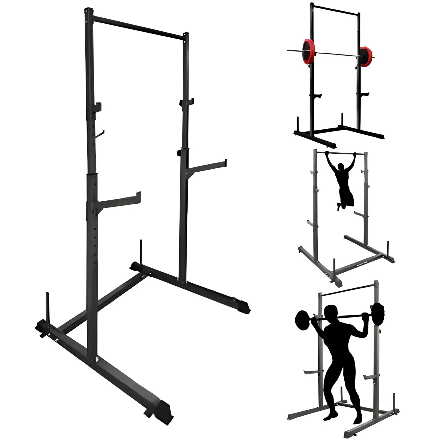 Gracias a la capacidad de ajuste de altura, este rack se adapta a varios tipos de ejercicios y usuarios, permitiendo una personalización completa del entrenamiento. La presencia de Safety Bar garantiza que incluso los principiantes puedan entrenar de forma segura, evitando accidentes al realizar ejercicios con pesos altos. La barra de dominadas le permite ampliar aún más la gama de ejercicios, lo que le permite entrenar eficazmente todo el cuerpo.