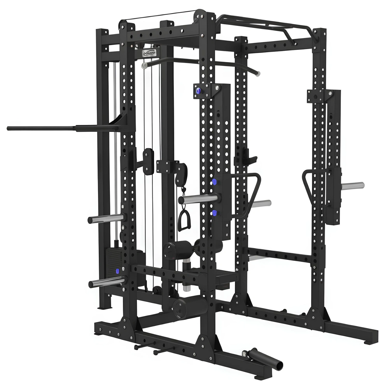 Este rack está diseñado para entornos que requieren la máxima fiabilidad, versatilidad y robustez, como salas de equipos comerciales, boxes de CrossFit, estudios profesionales y gimnasios domésticos avanzados. Se puede configurar para entrenamientos clásicos completos de levantamiento de pesas, incluidas sentadillas, press de banca y peso muerto, pero también ofrece numerosas posibilidades para ejercicios funcionales y de cable gracias a la presencia de accesorios integrados y módulos preparados.