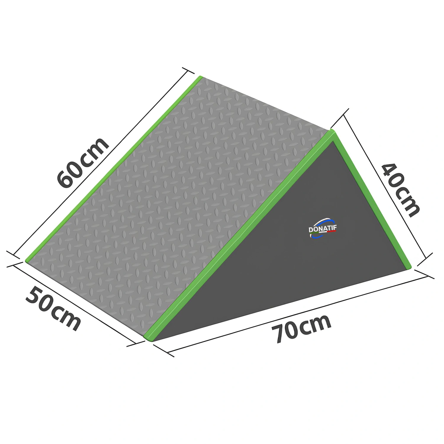 La forma inclinada te permite realizar movimientos oblicuos y verticales, promoviendo la adaptación muscular y la coordinación. Las dimensiones están diseñadas para asegurar una huella pequeña, ofreciendo al mismo tiempo suficiente espacio para la estabilidad y la libertad de movimiento.