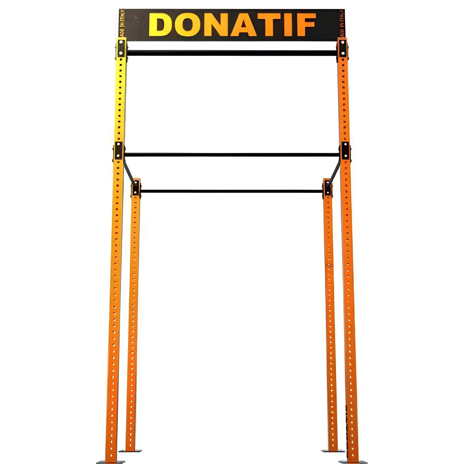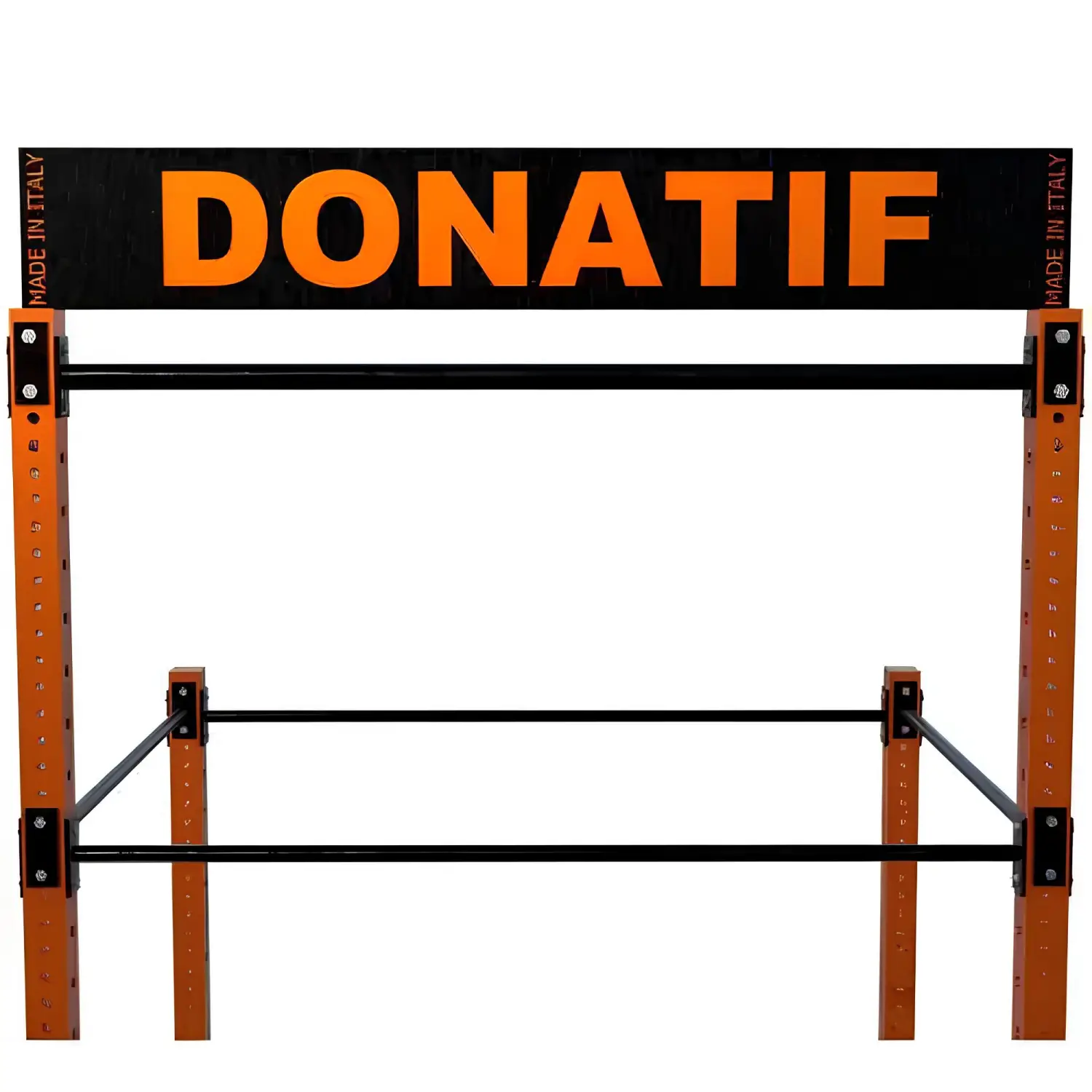 El DonatifModular R4 Cage Rig es una estructura modular diseñada para proporcionar una experiencia de entrenamiento de alta calidad que es perfecta para CrossFit y otras disciplinas de fitness. Construida completamente en acero con un diámetro de 33 mm, esta jaula está diseñada para garantizar resistencia y seguridad incluso en las sesiones de entrenamiento más intensas. La estructura, disponible en versiones para interiores y exteriores, está acabada con un doble recubrimiento en polvo que ofrece un excelente agarre y durabilidad en el tiempo, evitando el desgaste y la oxidación, especialmente en la versión para exteriores que incluye un tratamiento galvanizado. Las barras de tracción son personalizables en longitud y color, mientras que la altura se puede ajustar cada 5 cm, adaptándose así a las necesidades de cada usuario. El diseño cuidadoso y la mano de obra impecable garantizan un uso seguro, libre de residuos o protuberancias que puedan representar un riesgo.