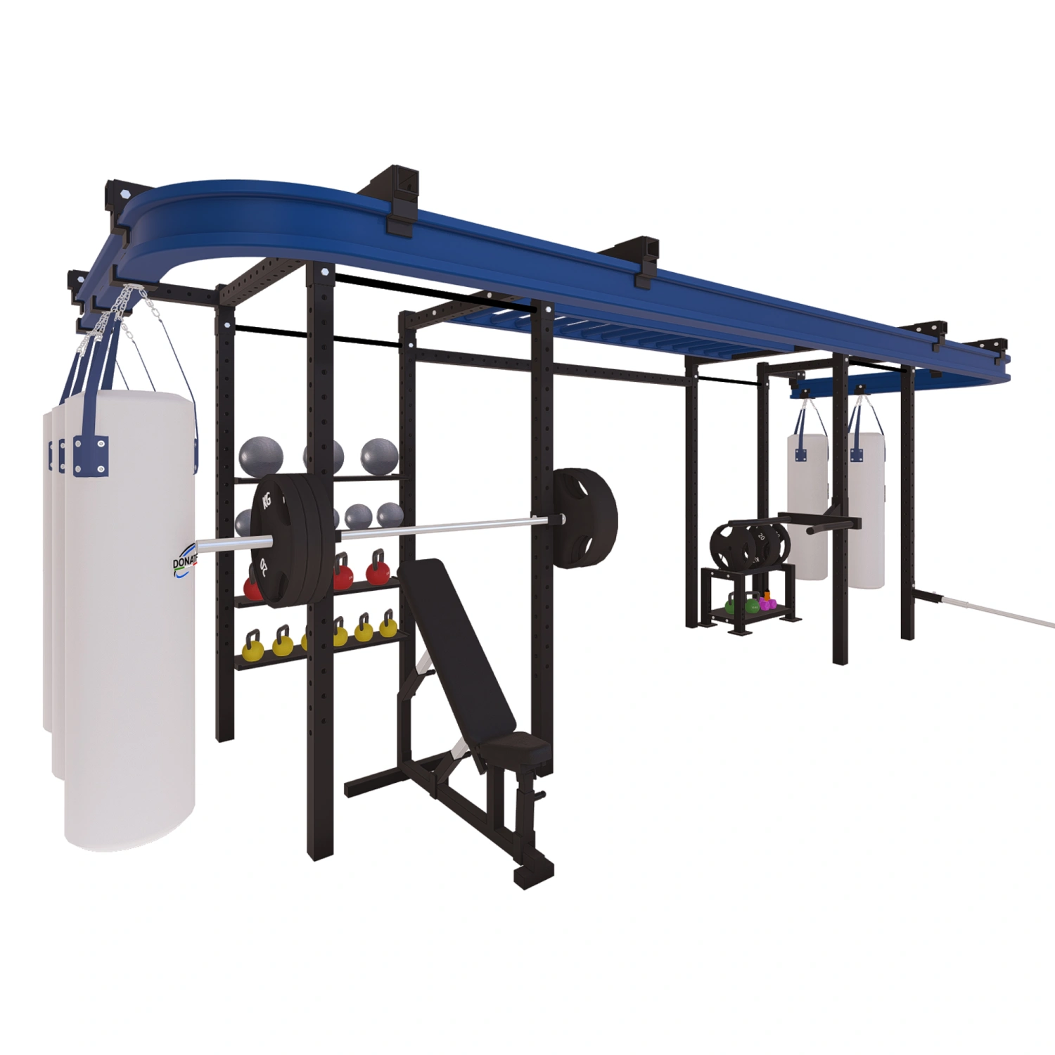 Los Racks Multi Station con Bolsas Giratorias son completamente personalizables: cada elemento – estructura, bolsas, colores, dimensiones – es adaptable a las necesidades del cliente. También puedes añadir accesorios e insertar el logotipo de tu gimnasio. Elegir la Estructura Multifunción Donatif significa centrarse en una innovación única, gracias al sistema de bolsas móviles sobre raíles, una solución ingeniosa y altamente funcional para el entrenamiento en grupos pequeños o grandes. La alta calidad de construcción está garantizada por el uso de acero profesional, acabados resistentes y un diseño diseñado para soportar incluso el uso más intensivo en el tiempo. Esta estructura destaca por su absoluta versatilidad: perfecta para entrenamientos de boxeo, circuitos funcionales, cross training y mucho más, también es ideal para entornos con necesidades modulares o espacios en constante evolución. Un producto único, totalmente diseñado en Italia, donde se unen estilo, funcionalidad y pasión.