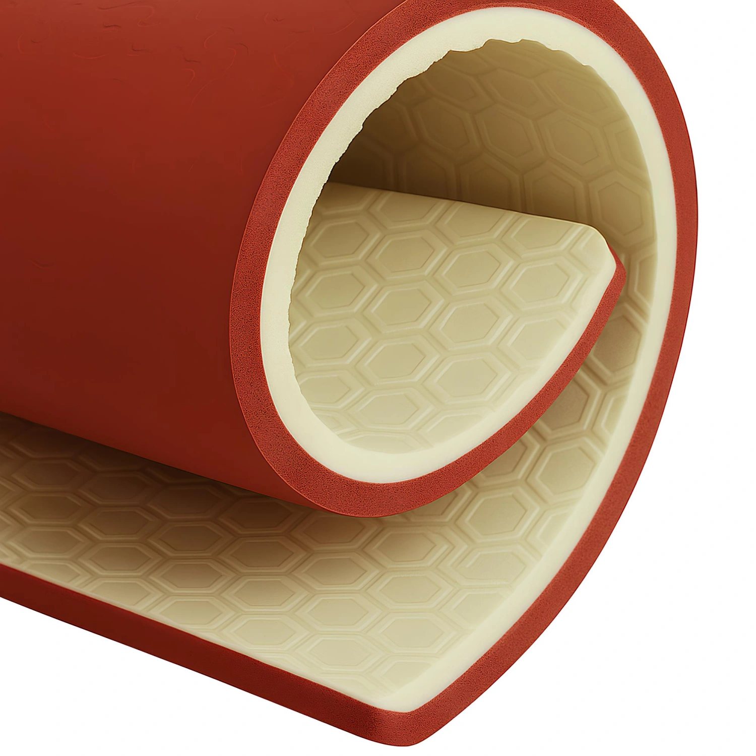 El espesor del suelo es de 4,5 mm, mientras que la capa de desgaste es de 1 mm, es decir, la parte superficial del revestimiento está diseñada para resistir la abrasión, los arañazos y el tráfico peatonal; Un valor de más de 1 mm representa un estándar óptimo para el uso deportivo y se considera un nivel profesional.