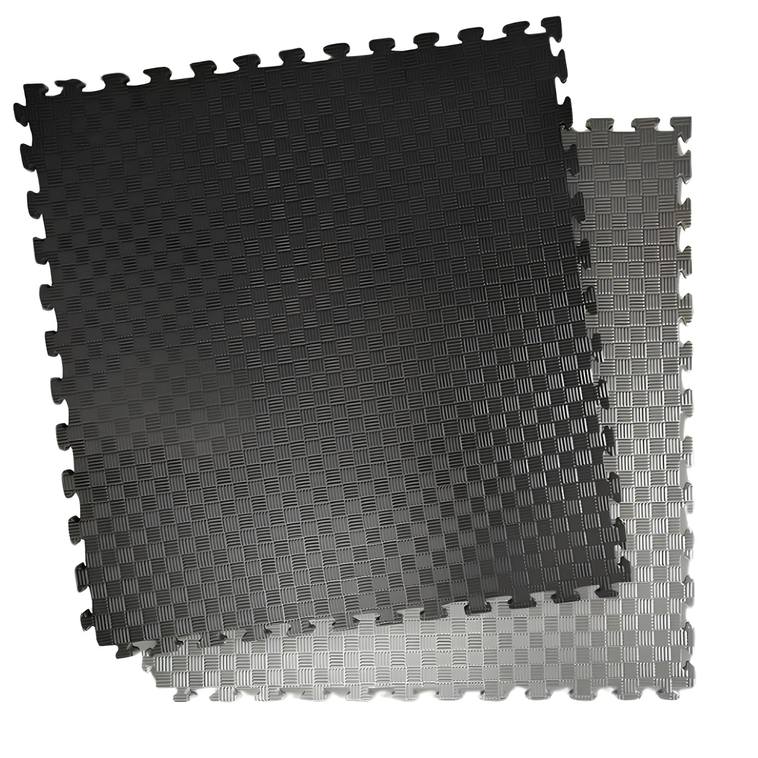 La superficie del tatami presenta una textura en relieve con cuadrados antideslizantes, que no sólo proporciona un agarre adicional, sino que también es suave con la piel, lo que lo hace perfecto para el entrenamiento en el suelo. Además, gracias a su diseño de puzzle entrelazado, el tatami es fácil de instalar y quitar, lo que permite adaptar rápidamente el espacio según las necesidades. Su reversibilidad, con colores negro y gris, permite delimitar zonas específicas dentro del gimnasio o dojo.